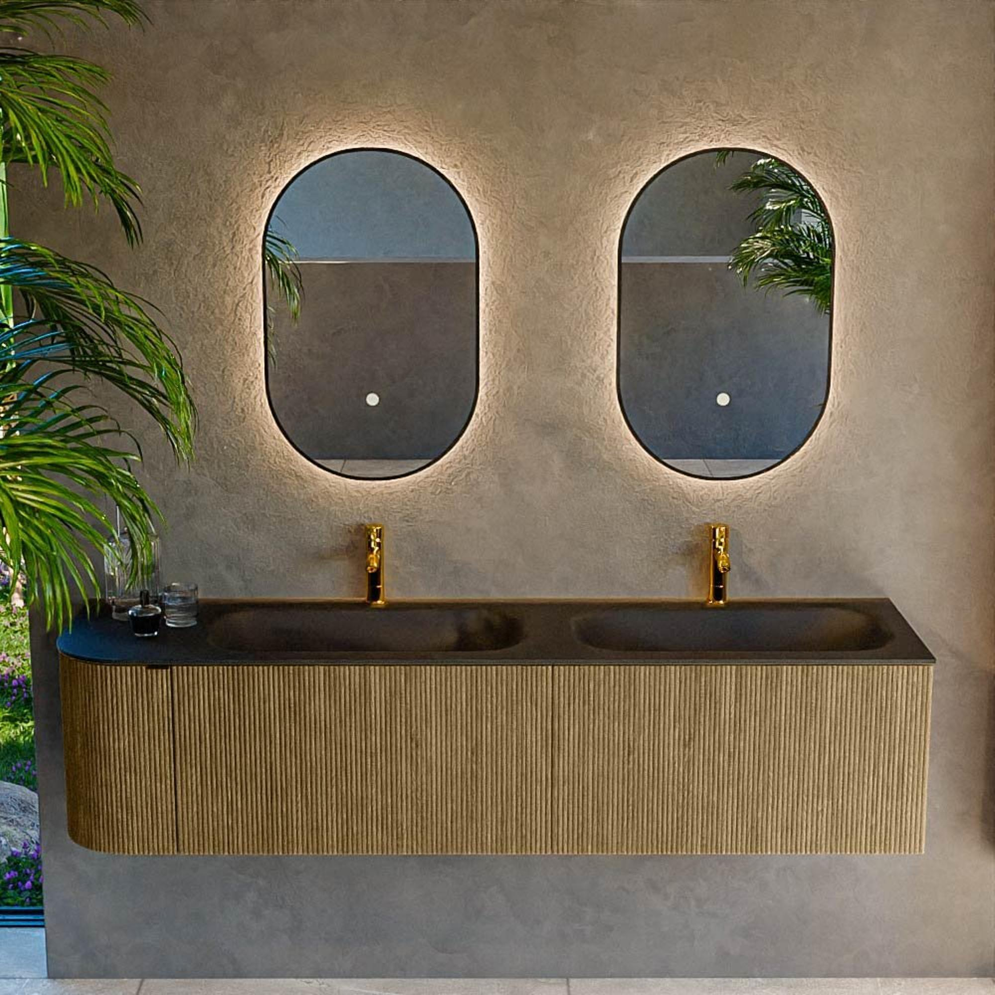 Mondiaz KURVE Badkamermeubelset - 175x46x40cm - 2 lade - 1 deur - wastafel solid surface - dubbel / rechts - 2 kraangaten - Dusk