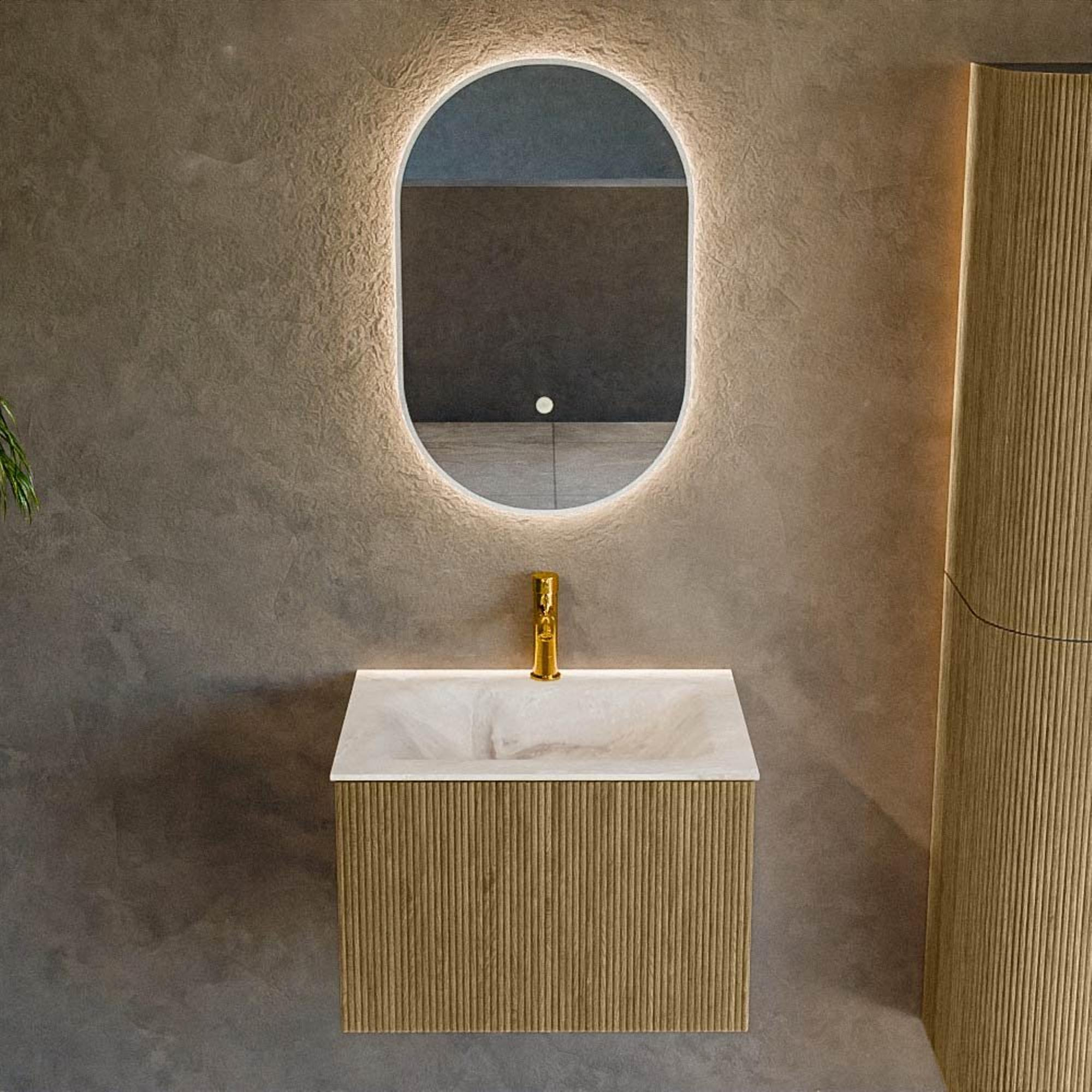 Functioneel Het is indrukwekkend hoe functioneel dit badkamermeubel in jouw dagelijks leven zal zijn. Het meubel met één lade biedt volop opbergruimte voor al je essentiële toiletartikelen. Je kunt verschillende items, van haarproducten tot handdoeken, netjes wegstoppen, zodat je badkamer er altijd strak en opgeruimd uitziet. De lade glijdt soepel open en dicht, wat bijzonder handig is tijdens jouw ochtend- en avondroutine. Bovendien is de wastafel van solid surface materiaal gemakkelijk schoon te maken en bestand tegen krassen en vlekken, waardoor je geniet van langdurige kwaliteit en gemak. Elk detail is zorgvuldig ontworpen om jouw dagelijkse leven eenvoudiger en efficiënter te maken, zonder in te boeten op esthetiek.