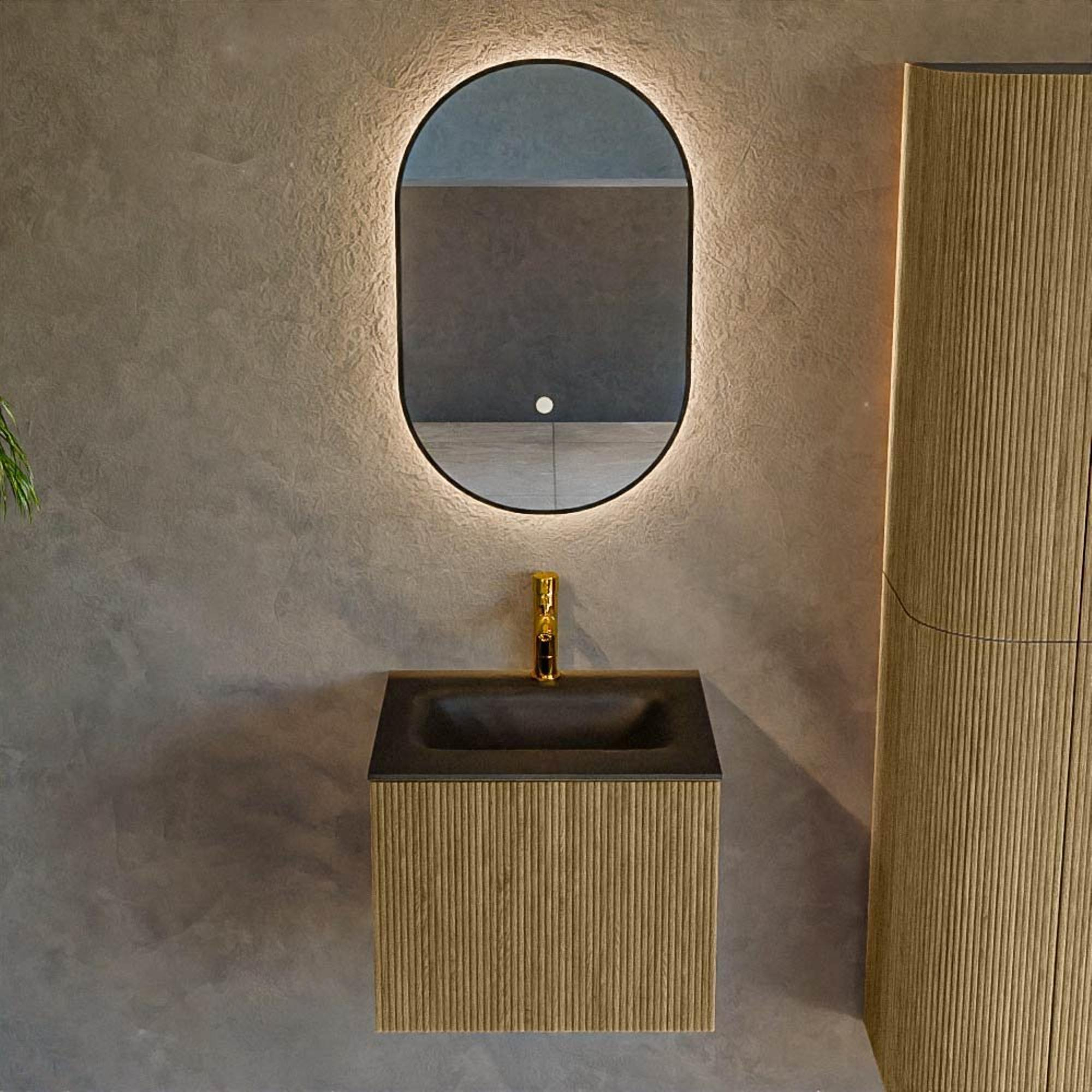 Mondiaz KURVE Badkamermeubelset - 50x46x40cm - 1 lade - wastafel solid surface - midden - 1 kraangat - Dusk