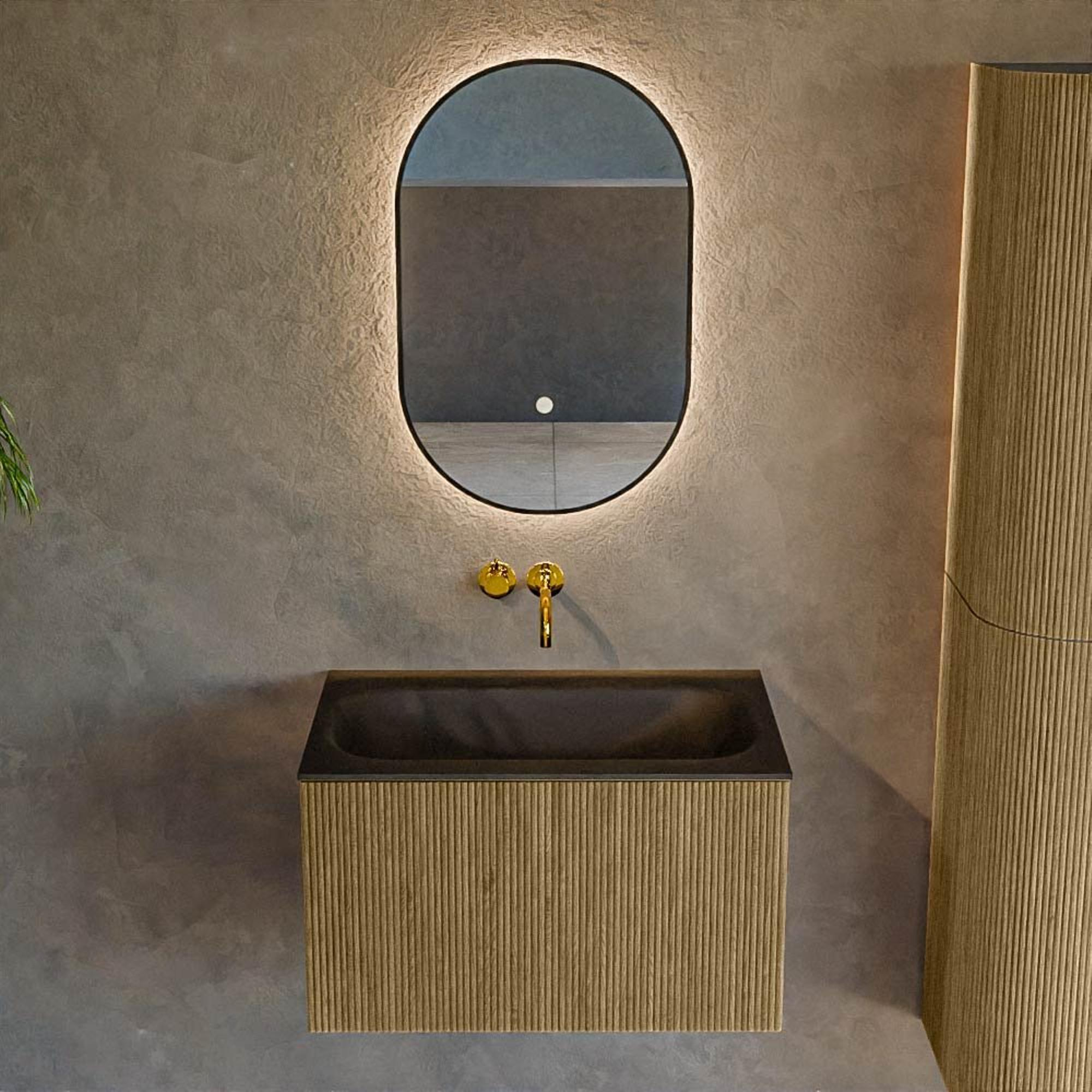 Mondiaz KURVE Badkamermeubelset - 70x46x40cm - 1 lade - wastafel solid surface - midden - zonder kraangat - Dusk