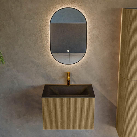 Functioneel Naast zijn prachtige verschijning, blinken de praktische eigenschappen van deze meubelset ook uit. Het ontwerp is niet alleen gericht op esthetiek maar ook op gebruiksgemak. De wastafel, vervaardigd van solid surface materiaal, is duurzaam en gemakkelijk schoon te houden, ideaal in een vochtige omgeving zoals de badkamer. De ruime lade, perfect ontworpen voor het organiseren van al jouw badkameraccessoires, biedt een zee aan opbergruimte waardoor je gemakkelijk orde kunt houden in je badkamer. Het slimme ontwerp zorgt ervoor dat alles binnen handbereik is zonder dat het rommelig oogt. Met een centrale kraangat biedt het wastafelblad precisie en functionaliteit voor dagelijks gebruik, wat betekent dat je je geen zorgen hoeft te maken over de installatie van extra componenten. Bovendien is de afmeting van 60x46x40 cm ideaal voor zowel kleine als grote badkamers, waardoor het ook qua ruimtegebruik efficiënt is. Deze combinatie van factoren maakt het tot een uiterst functioneel stuk dat jouw badkamerrituelen een stuk soepeler laat verlopen.