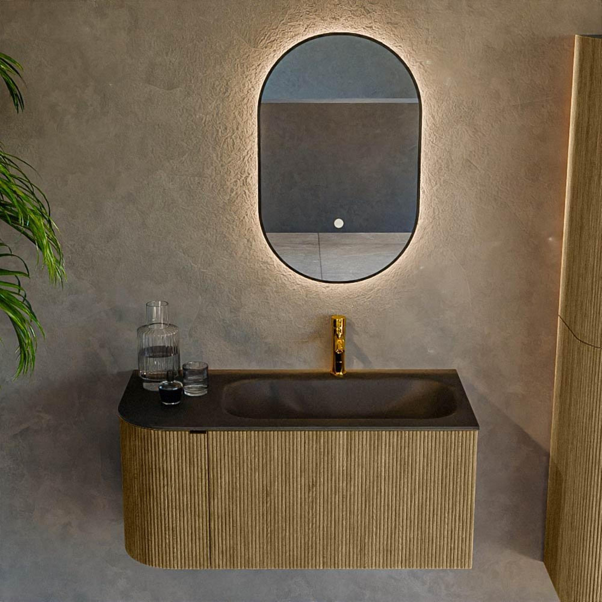 Mondiaz KURVE Badkamermeubelset - 95x46x40cm - 1 lade - 1 deur - wastafel solid surface - rechts - 1 kraangat - Dusk