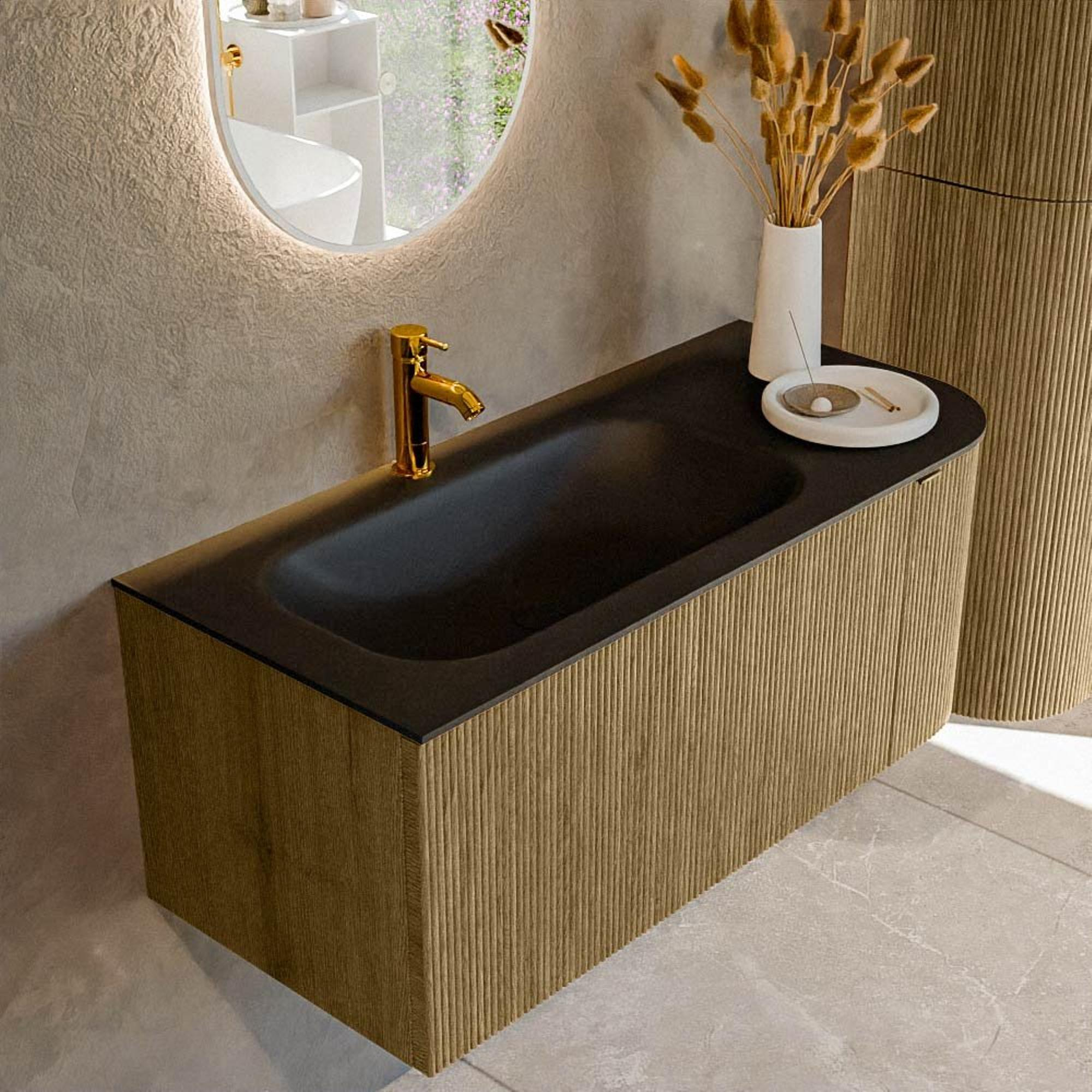 Mondiaz KURVE Badkamermeubelset - 105x46x40cm - 1 lade - 1 deur - wastafel solid surface - links - 1 kraangat - Dusk