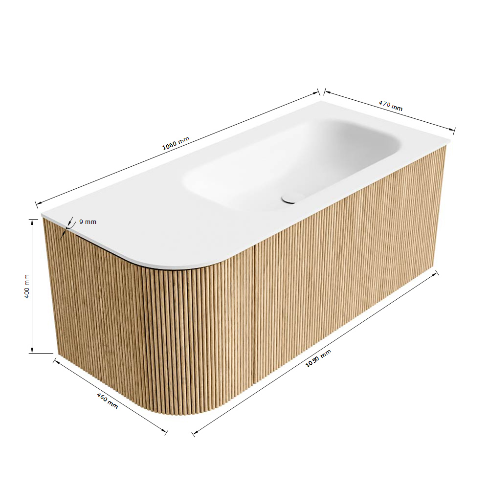 Functioneel Functionaliteit staat centraal bij dit prachtige badkamermeubel. Het is ontworpen met de behoeften van de moderne gebruiker voor ogen. Het meubel beschikt over een lade en een deur die je essentiële spullen op een makkelijke én georganiseerde manier opbergen. De lade glijdt soepel open en dicht dankzij de hoogwaardige rails, en biedt voldoende ruimte om al je toiletartikelen op te bergen. Ook de deur opent soepel, wat zorgt voor een gemakkelijke toegang tot de onderste opbergruimte. De wastafel is praktisch en stijlvol vormgegeven, met een enkele kraangat aan de rechterkant, wat extra flexibiliteit geeft in het toevoegen van een kraan van jouw keuze. Dit ontwerp maakt optimaal gebruik van de beschikbare ruimte en laat genoeg open vloeroppervlak over, zodat je je vrij kunt bewegen. De combinatie van de juiste functionaliteit en stijl zorgt ervoor dat je badkamer niet alleen een plek is om je op te frissen, maar ook om te genieten.