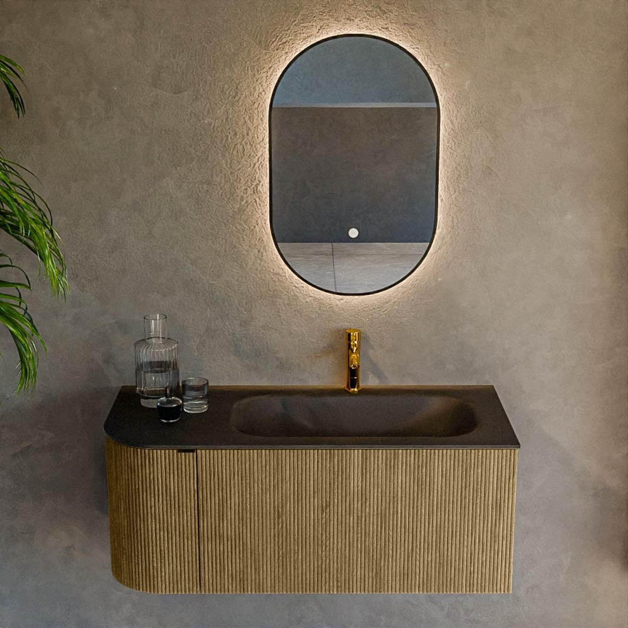 Mondiaz KURVE Badkamermeubelset - 105x46x40cm - 1 lade - 1 deur - wastafel solid surface - rechts - 1 kraangat - Dusk