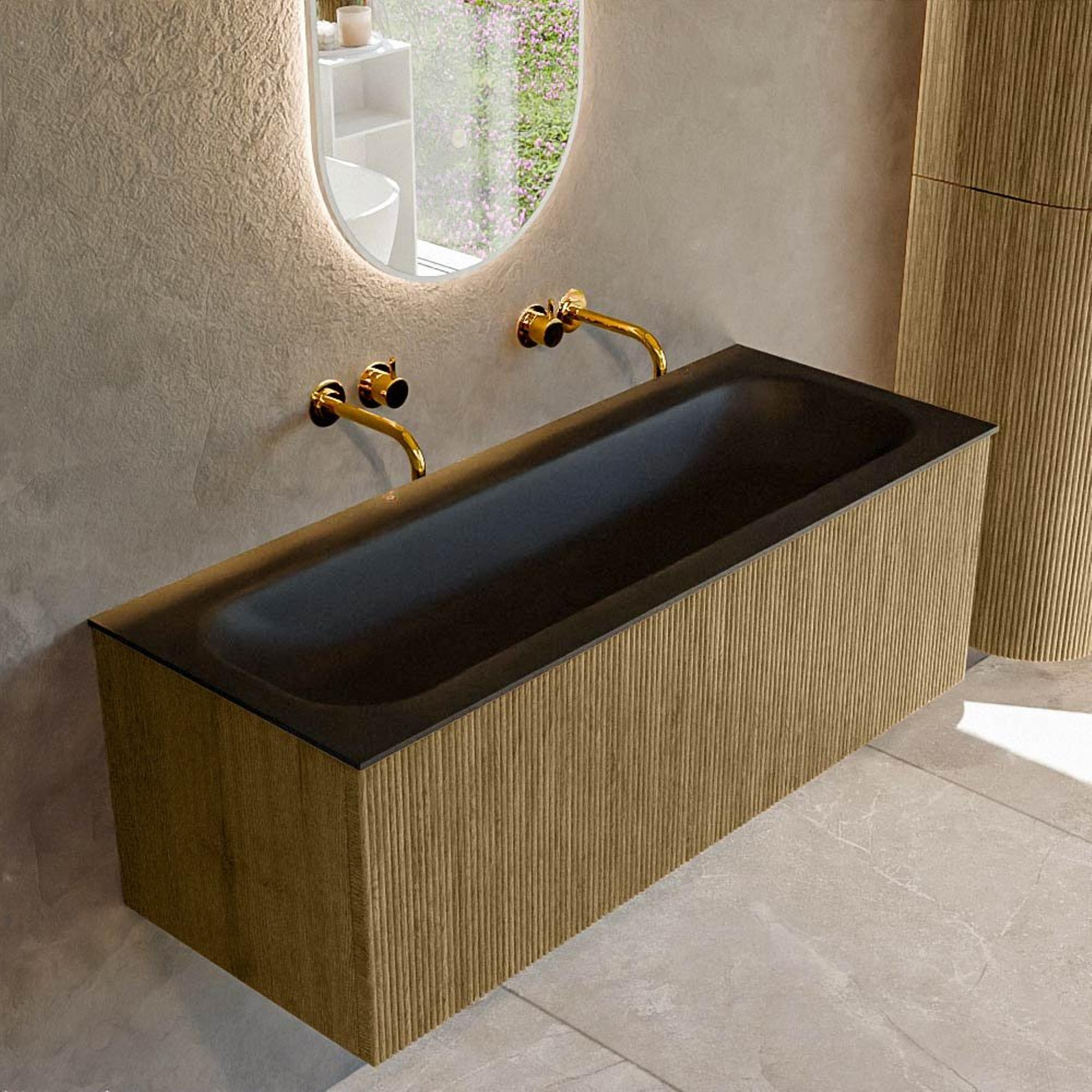Mondiaz KURVE Badkamermeubelset - 120x46x40cm - 1 lade - wastafel solid surface - midden - zonder kraangat - Dusk