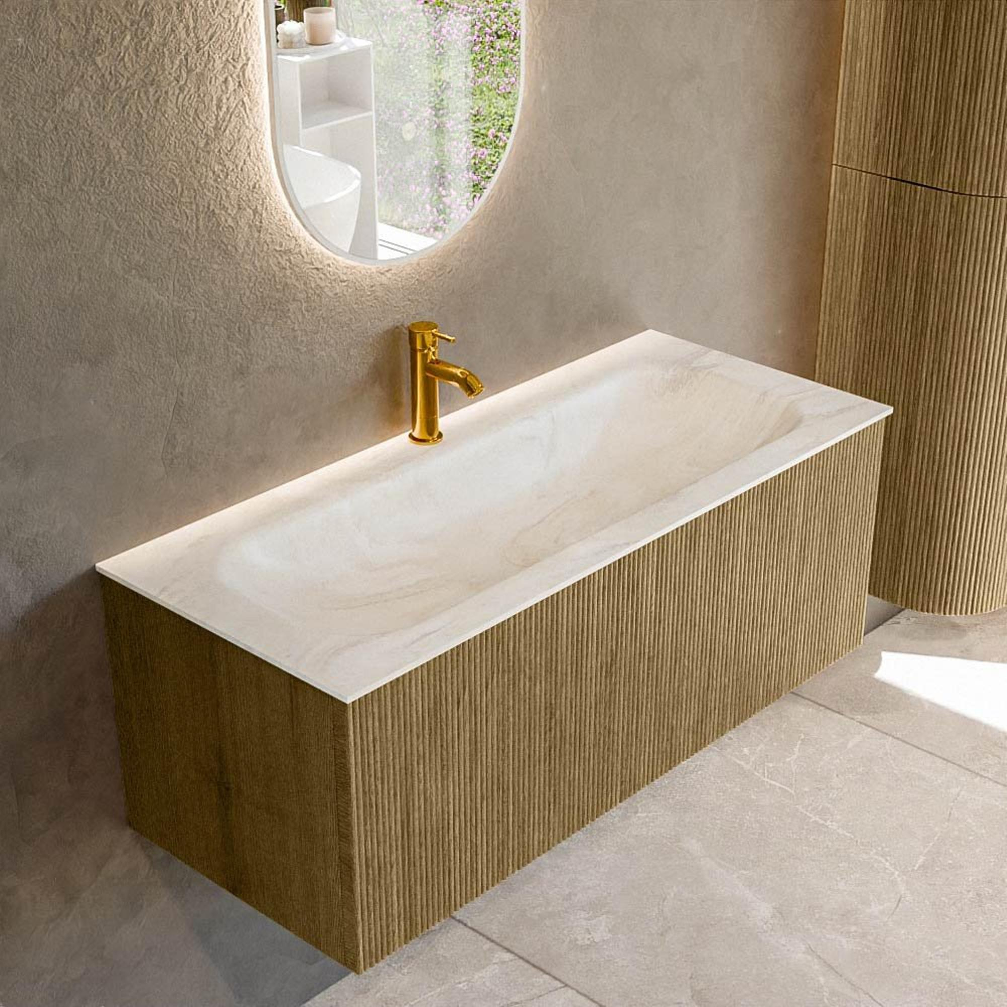 Mondiaz KURVE-DLUX Badkamermeubelset - 110x46x40cm - 1 lade - wastafel solid surface - midden - 1 kraangat - Dusk