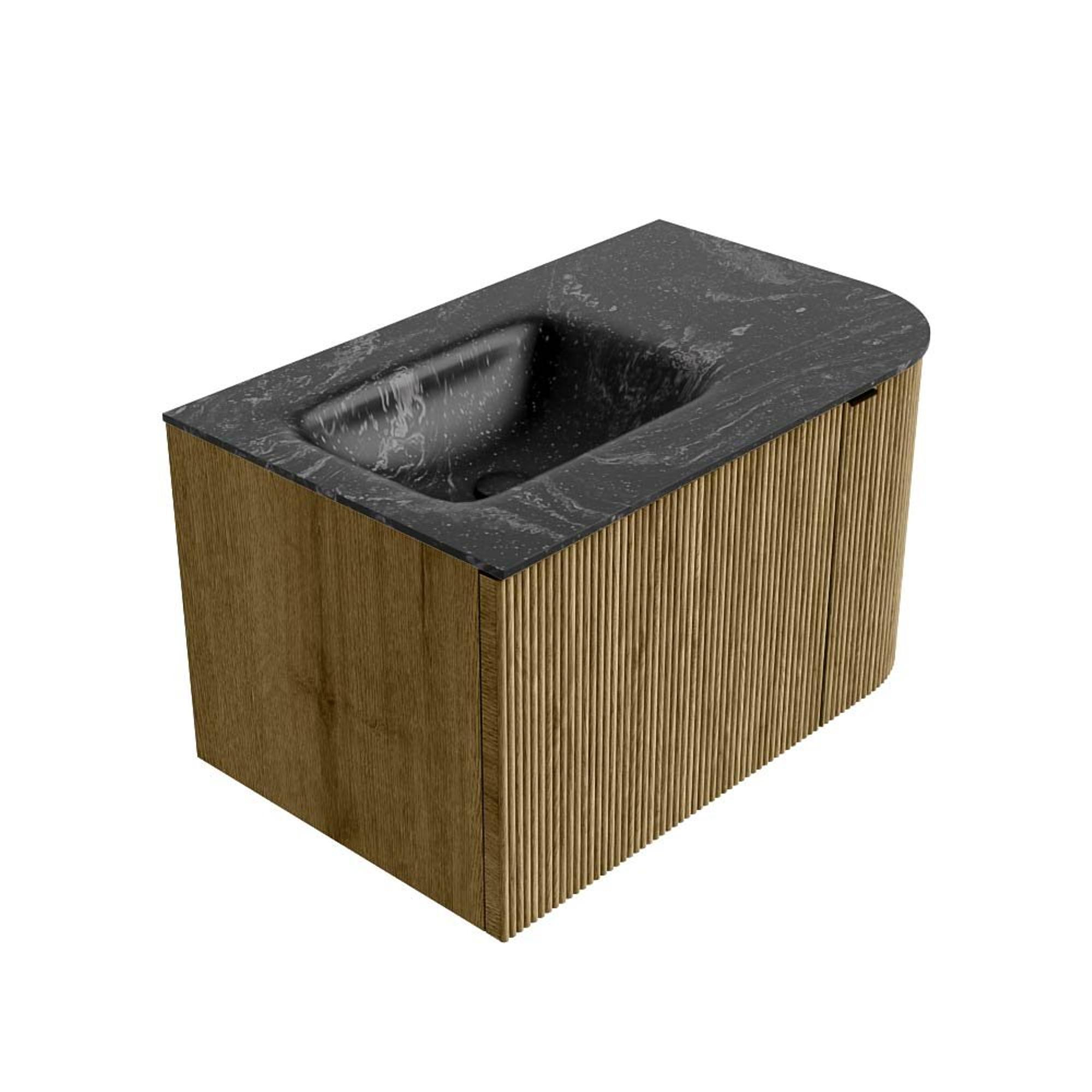 Mondiaz KURVE-DLUX Badkamermeubelset - 75x46x40cm - 1 lade - 1 deur - wastafel solid surface - links - 1 kraangat - Dusk