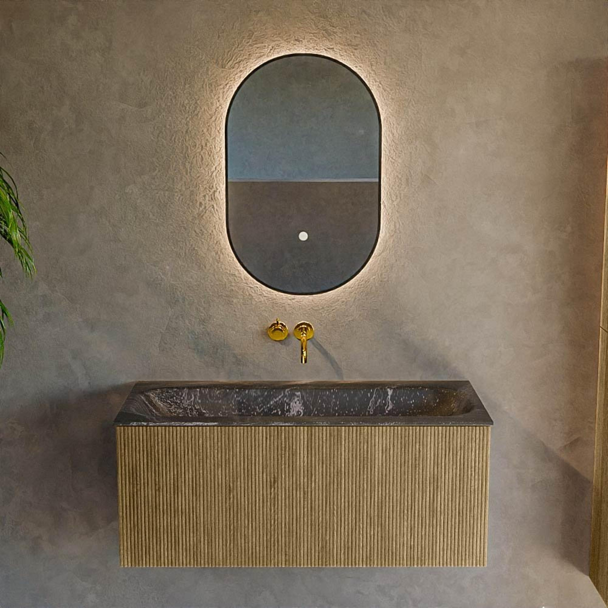 Verfijnd In de essentie van deze badkamermeubelset schuilt een gevoel van verfijning dat elke badkamer verheft naar een nieuw niveau van luxe. De gedetailleerde afwerking en het gebruik van hoogwaardige materialen zoals solid surface geven het geheel een premium uitstraling. Dit niveau van verfijning zorgt ervoor dat je dagelijks kunt genieten van een badkamer die niet alleen functioneel is, maar ook een plek van rust en schoonheid biedt. Het veelzijdige ontwerp maakt het mogelijk om de set te combineren met diverse badkamerstijlen, van modern tot klassiek, en tegelijkertijd een gevoel van elegantie en rust te behouden. Door het slimme ontwerp, met de wastafel in het midden geplaatst, wordt symmetrie gecreëerd die visueel aantrekkelijk is en toch praktisch blijft. Deze verfijnde balans van stijl, kwaliteit en design betekent dat je een statement maakt zonder afbreuk te doen aan persoonlijke smaak of ruimtevereisten. Laat je inspireren door een badkamermeubelset die meer biedt dan alleen de basis, maar een complete ervaring van dagelijks comfort en luxe.