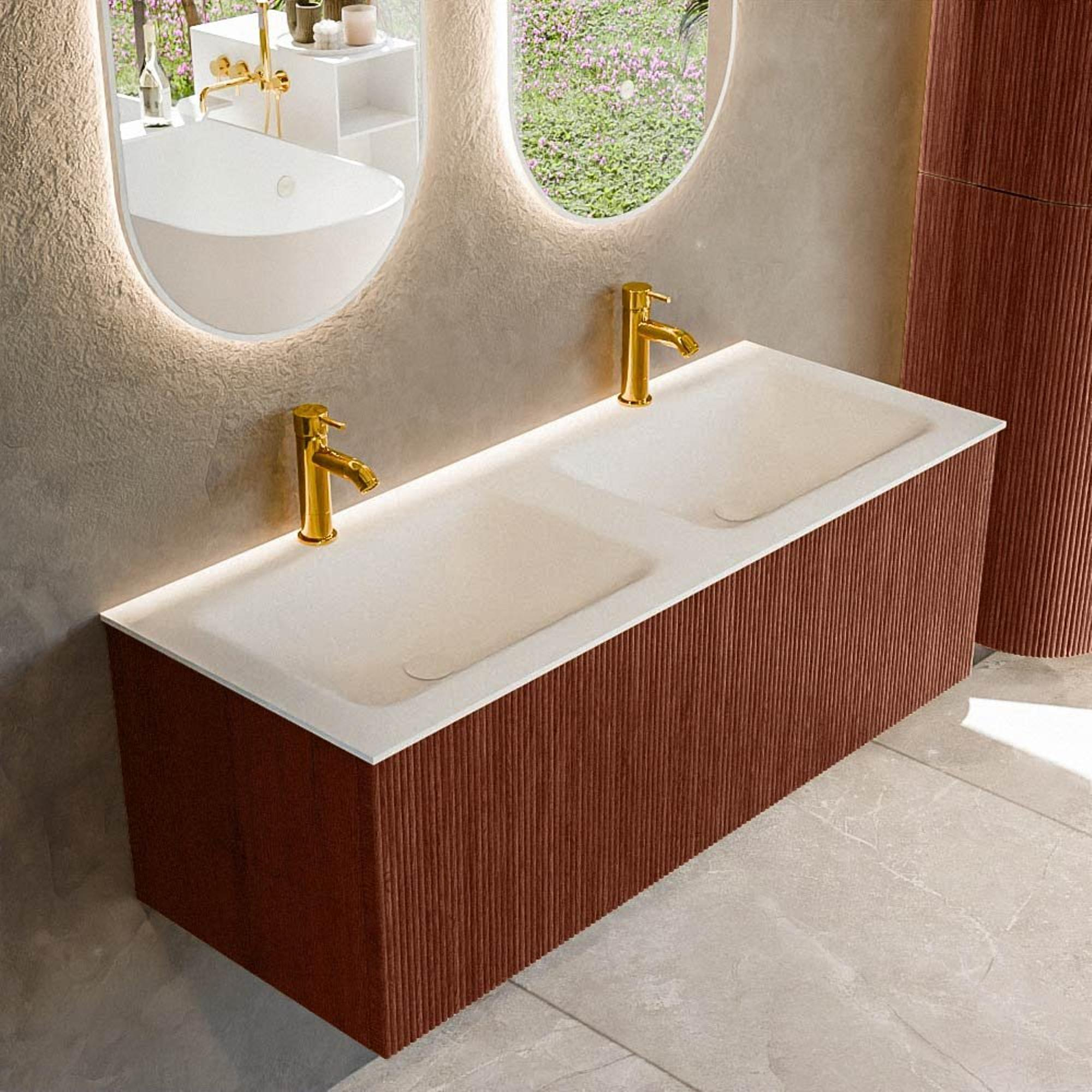 Mondiaz KURVE Badkamermeubelset - 120x46x40cm - 1 lade - wastafel solid surface - dubbel - 2 kraangaten - Ruby