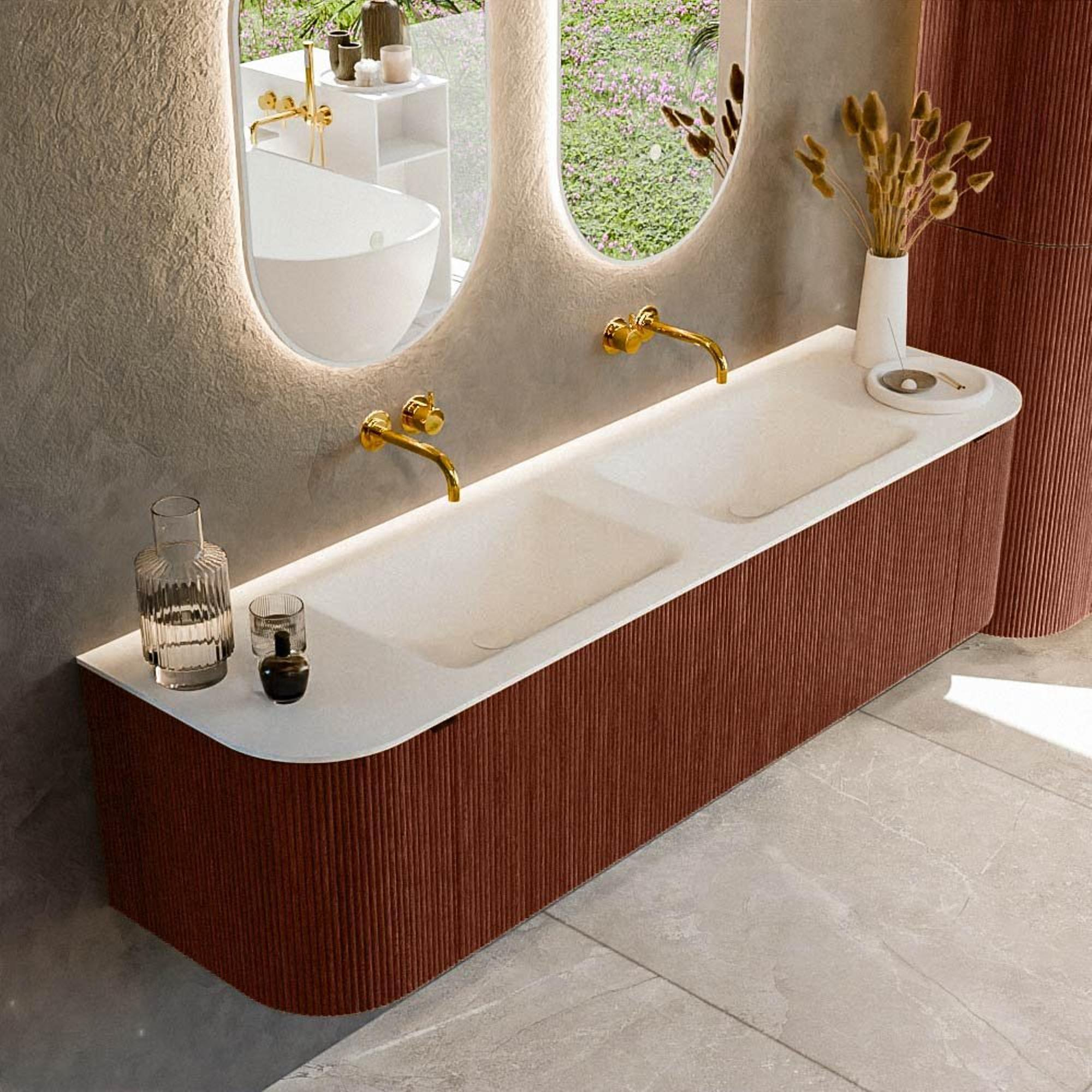 Mondiaz KURVE Badkamermeubelset - 170x46x40cm - 1 lade - 2 deuren - wastafel solid surface - dubbel - zonder kraangat - Ruby