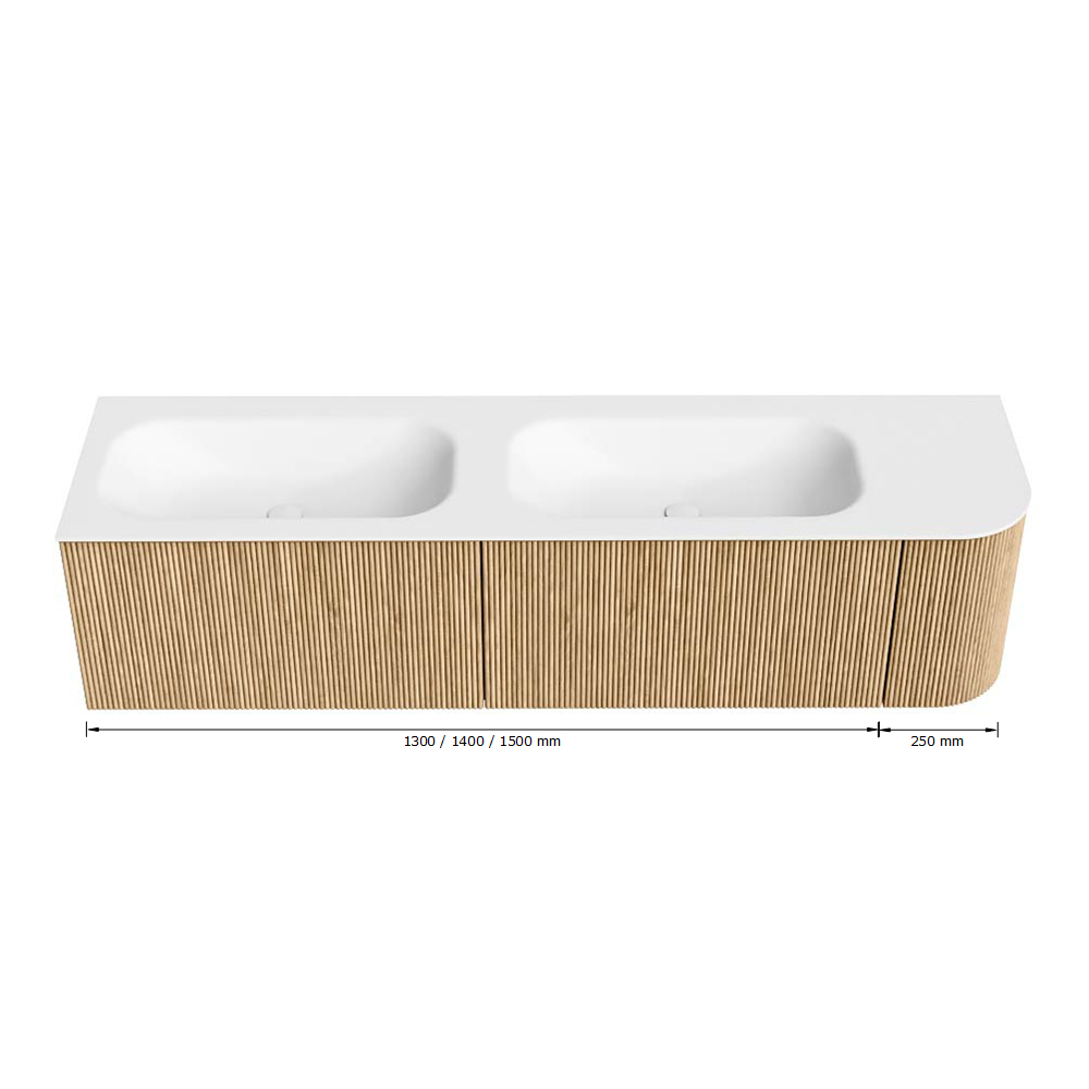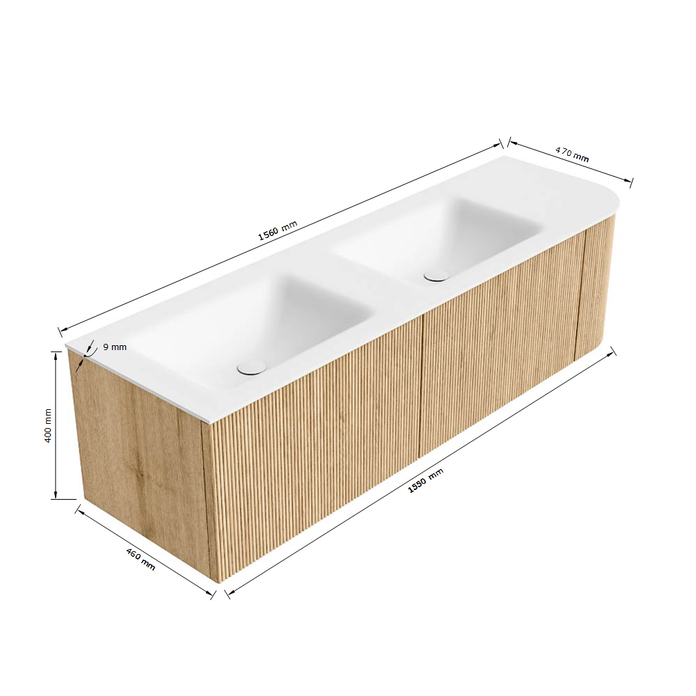 Mondiaz KURVE Badkamermeubelset - 155x46x40cm - 2 lade - 1 deur - wastafel solid surface - dubbel / links - zonder kraangat - Ruby
