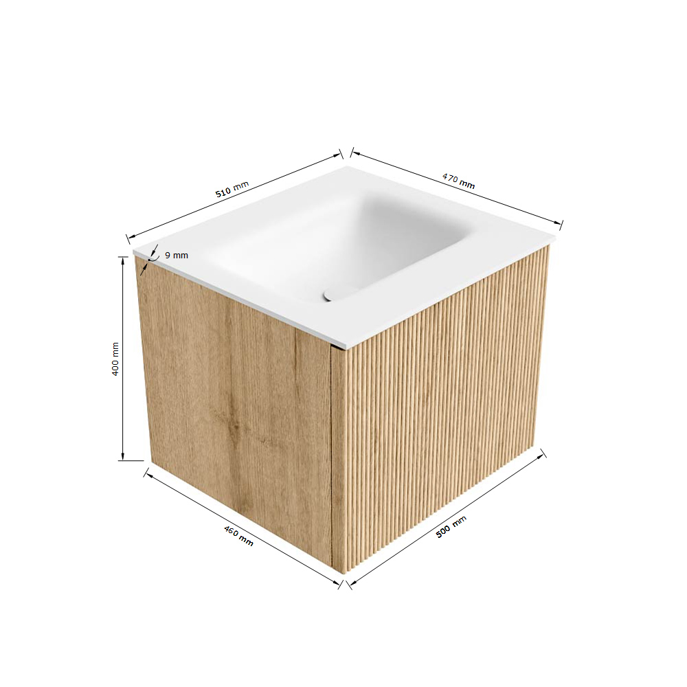 Functioneel Bij dit meubel kun je erop vertrouwen dat functionaliteit net zo belangrijk is als stijl. De lade biedt voldoende ruimte om al jouw badkamerbenodigdheden netjes op te bergen, van handdoeken tot schoonheidsproducten, alles binnen handbereik zonder dat het een rommelig geheel wordt. De efficiënte indeling zorgt er bovendien voor dat je nooit meer hoeft te zoeken naar wat je nodig hebt. De wastafel, vervaardigd uit een solide oppervlaktemateriaal, is duurzaam en gemakkelijk schoon te houden, waardoor je meer tijd hebt om te ontspannen in plaats van schoon te maken. Het ontbreken van een kraangat betekent dat je de flexibiliteit hebt om een wastafelmengkraan te kiezen die precies past bij jouw persoonlijke stijl en behoeften. Dit meubel is de ideale keuze voor iedereen die functionele elegantie in hun badkamer wil brengen zonder concessies te doen aan uiterlijk of gebruiksgemak.