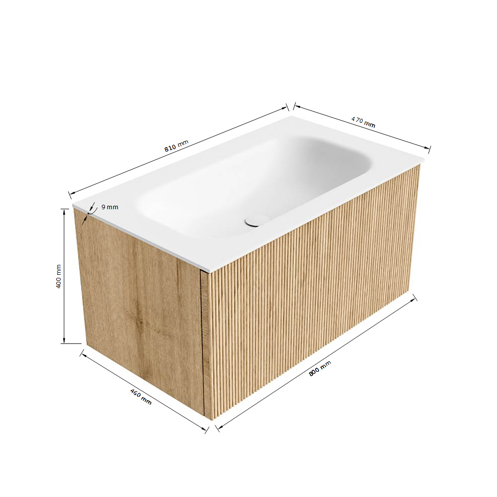 Duurzaam Gemaakt van materialen van de hoogste kwaliteit, staat deze badkamermeubelset garant voor een lange levensduur. De wastafel, vervaardigd van solide surface materiaal, is krasbestendig en behoudt zijn glans zelfs na jaren van gebruik. Het materiaal is gemakkelijk schoon te maken, waardoor het onderhoud minimaal is en de set er altijd als nieuw uitziet. Bovendien is het meubel ontworpen om bestand te zijn tegen de dagelijkse druk van vochtige badkamers, zonder dat het zijn structuur of uitstraling verliest. De stevige lade sluit soepel en stil, dankzij het geavanceerde soft-close mechanisme, dat bijdraagt aan de duurzaamheid van het product en het comfort in gebruik. Deze focus op duurzame materialen en constructie verzekert dat je lang zult genieten van deze investering. Dit gaat verder dan alleen een esthetische aantrekkingskracht, want het biedt ook functionele duurzaamheid die zich dagelijks bewijst in jouw leefruimte.
