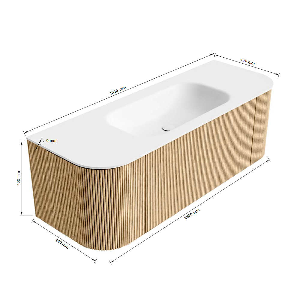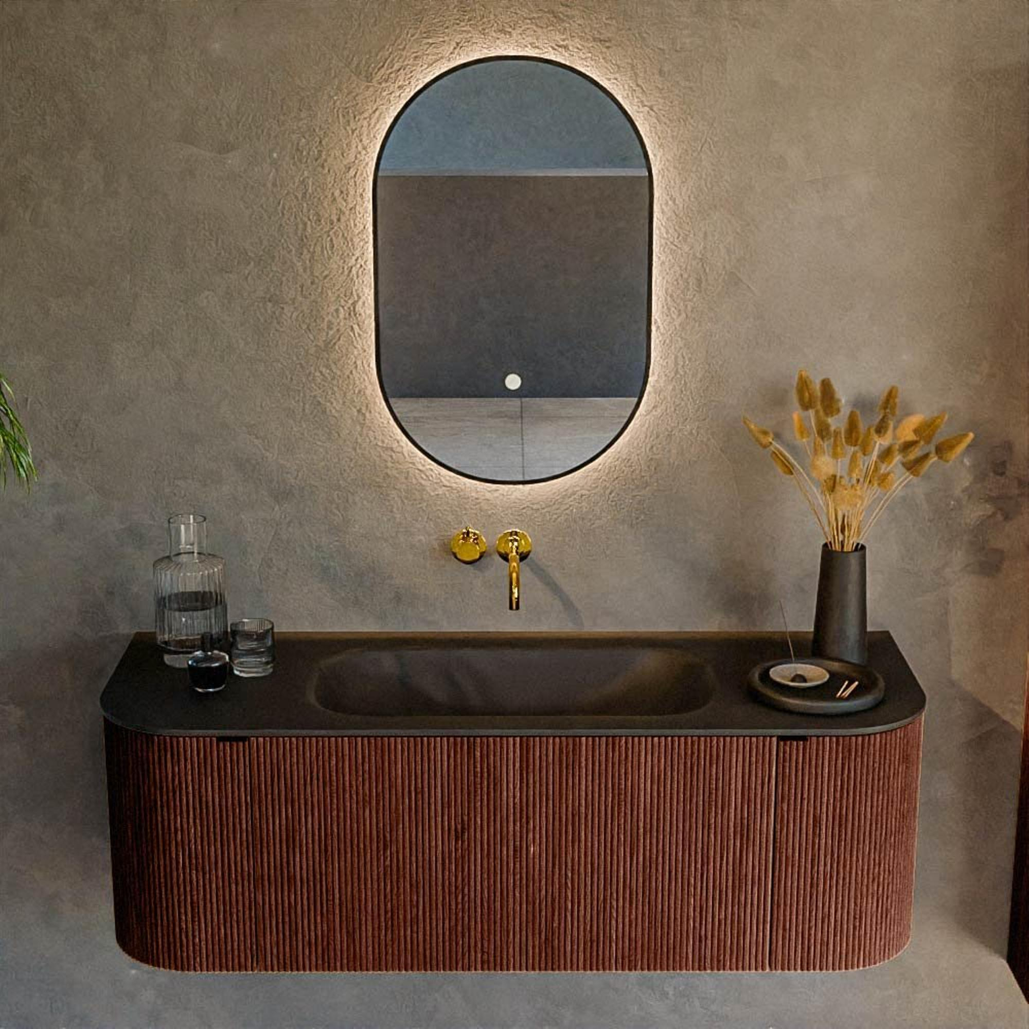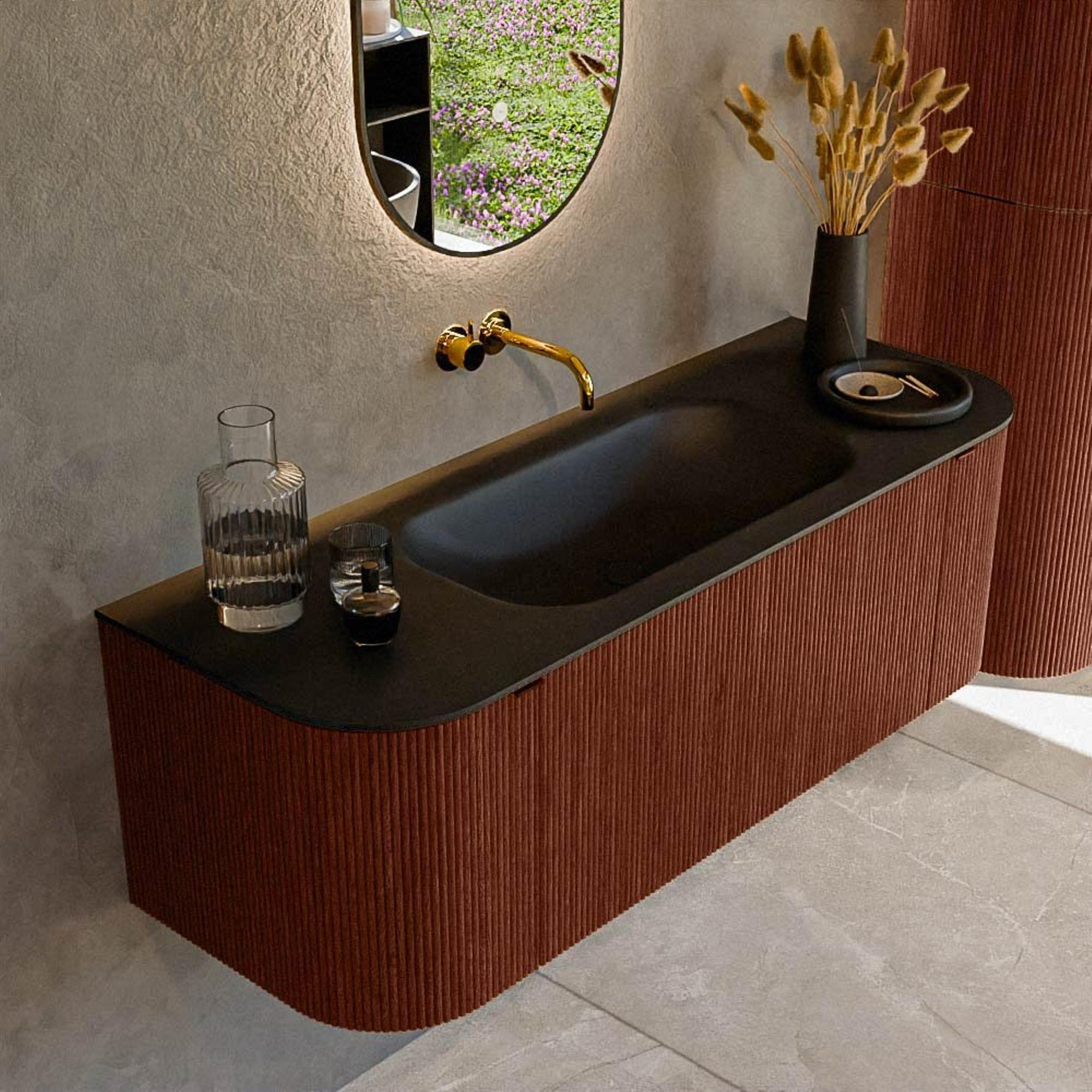 Mondiaz KURVE Badkamermeubelset - 130x46x40cm - 1 lade - 2 deuren - wastafel solid surface - midden - zonder kraangat - Ruby