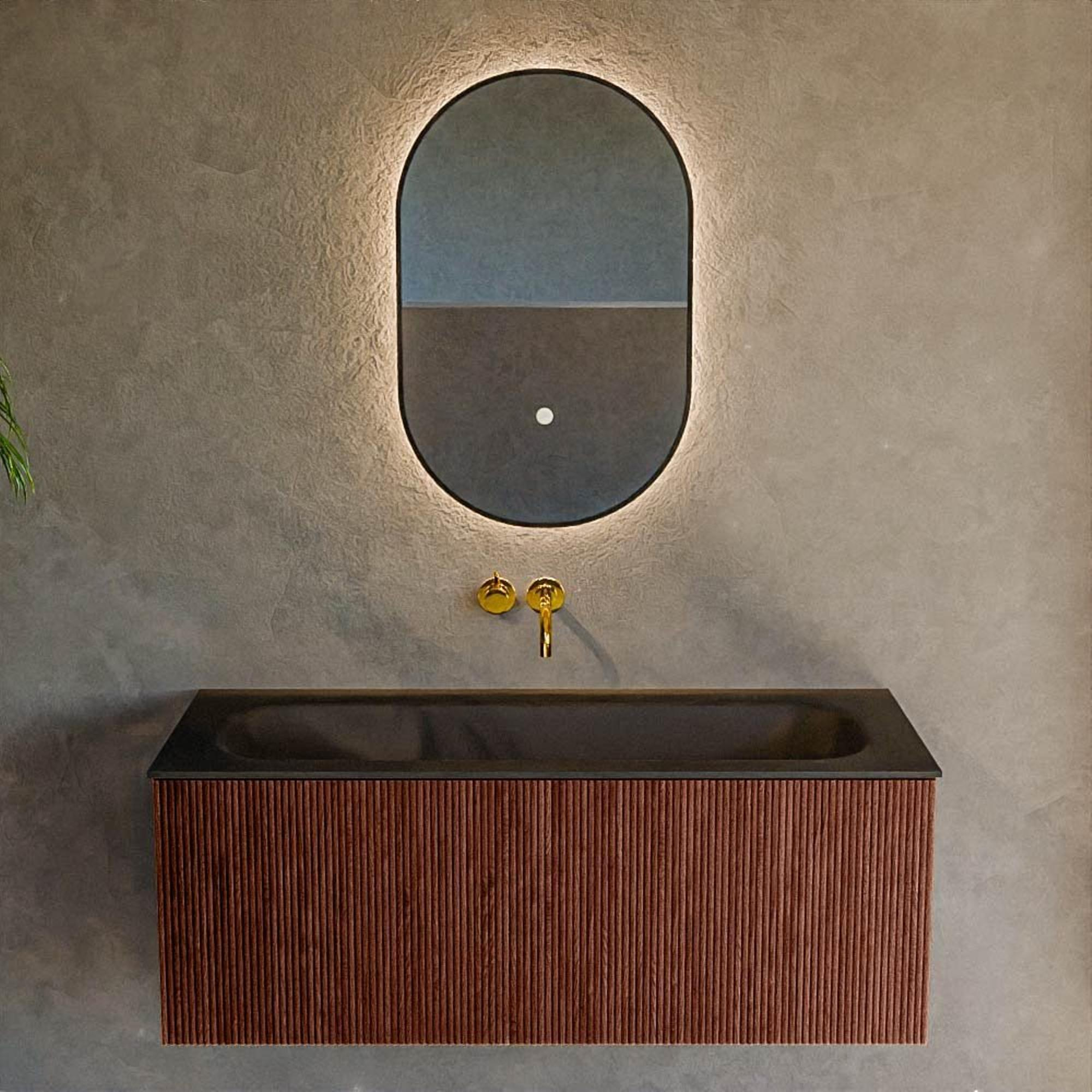 Ervaar de klassieke elegantie van deze badkamermeubelset, een perfecte toevoeging aan jouw badkamer die de ruimte onmiddellijk transformeert in een zen-achtige oase. Gemaakt met oog voor detail en vakmanschap, biedt deze meubelset een sublieme combinatie van functionaliteit en stijl. Zonder een kraangat, is het design van deze set strak en modern, wat een minimalistische en serene uitstraling aan jouw badkamer toevoegt. De warme Ruby kleur en het slanke ontwerp zorgen ervoor dat dit meubelstuk moeiteloos in elk interieur past, waardoor een rustgevende harmonie in de ruimte ontstaat. De stevige wastafel van solid surface is duurzaam en behoeft weinig onderhoud, waardoor het een praktische keuze is voor drukke huishoudens. De ruime lade biedt voldoende opbergruimte voor al jouw badkamerbenodigdheden, terwijl je door het 'soft close'-mechanisme geniet van extra luxe. Met zijn afmetingen van 110x46x40 cm is deze set perfect bemeten om zowel kleinere als grotere badkamers te complementeren. Het tijdloze design nodigt uit om dagelijks van je badkamer te genieten, en biedt iedere bezoeker een vleugje luxe en comfort.