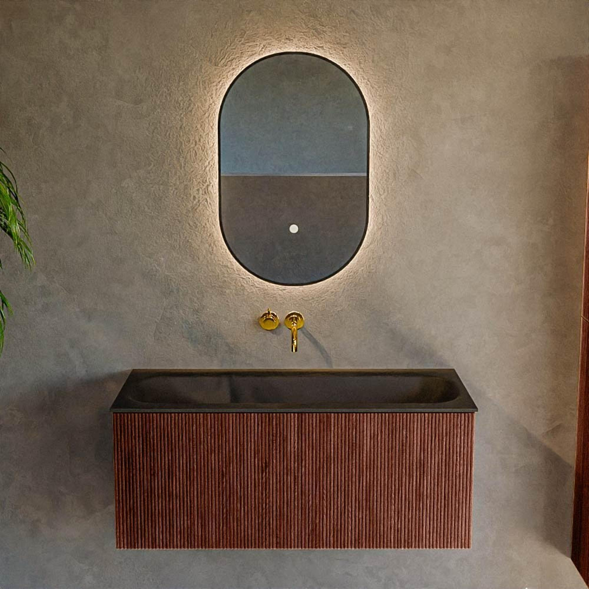 Mondiaz KURVE Badkamermeubelset - 100x46x40cm - 1 lade - wastafel solid surface - midden - zonder kraangat - Ruby