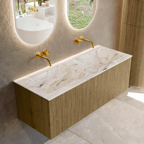Mondiaz KURVE-DLUX Badkamermeubelset - 120x46x40cm - 1 lade - wastafel solid surface - dubbel - zonder kraangat - Dusk
