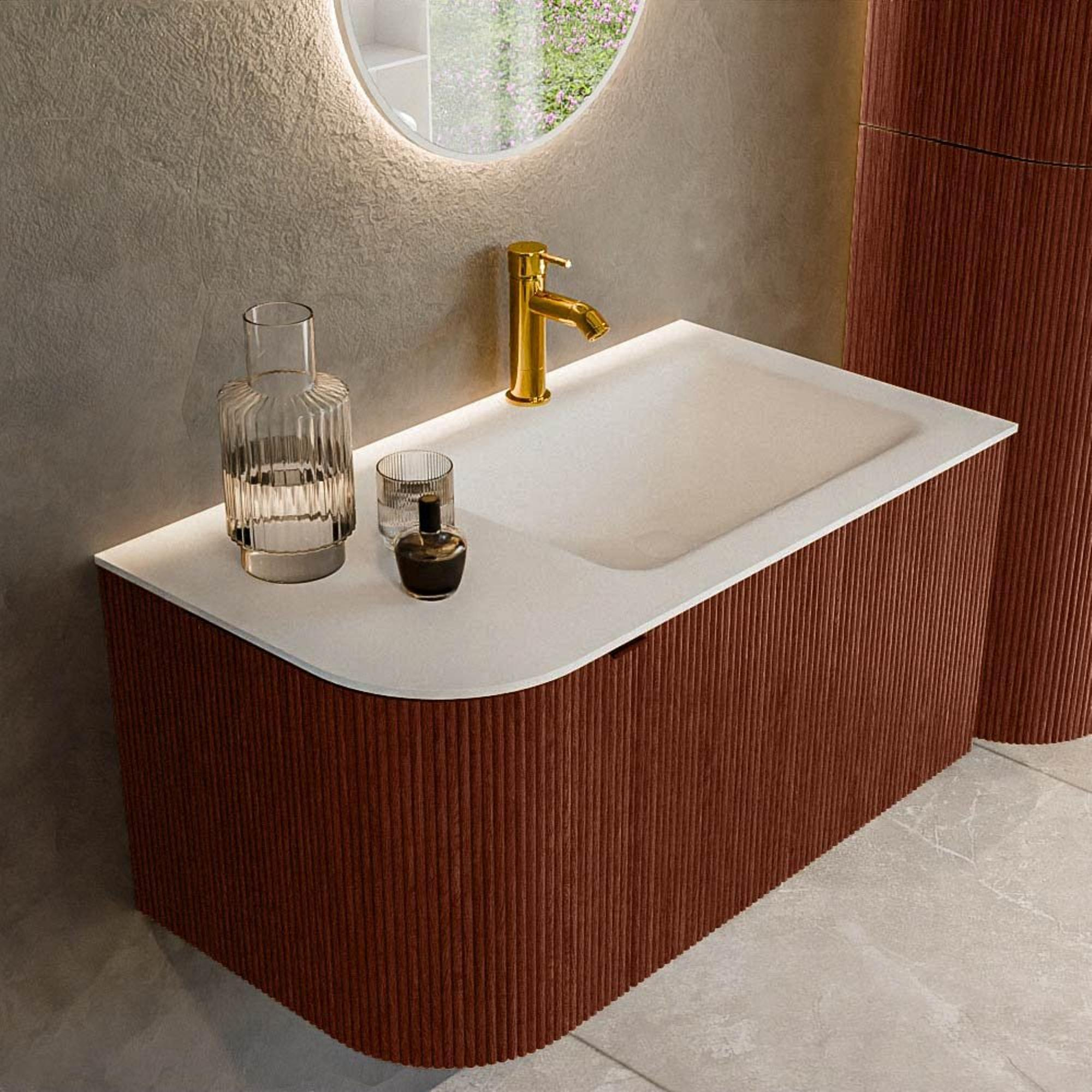 Mondiaz KURVE Badkamermeubelset - 85x46x40cm - 1 lade - 1 deur - wastafel solid surface - rechts - 1 kraangat - Ruby