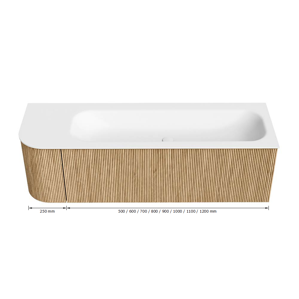 Mondiaz KURVE Badkamermeubelset - 115x46x40cm - 1 lade - 1 deur - wastafel solid surface - rechts - zonder kraangat - Ruby