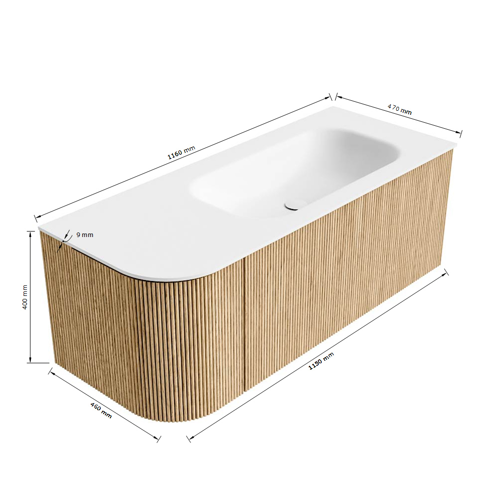 Met een perfectie die de moderne badkamer overstijgt, straalt deze badkamermeubelset een ongeëvenaarde elegantie uit waardoor jouw dagelijkse routine verandert in een luxe ervaring. De ruimtelijke indeling van de set, met een afmeting van 115x46x40 cm, is zo ontworpen dat het naadloos in elke badkameromgeving past en toch een statement maakt. De moderne en strakke lijnen worden verder benadrukt door de opvallende Ruby kleur, die warmte en een verfijnde uitstraling toevoegt. De wastafel is vervaardigd uit hoogwaardig solid surface materiaal, wat niet alleen duurzaamheid garandeert maar ook hygiënisch is door de niet-poreuze afwerking. Deze wastafel bevindt zich aan de rechterzijde van het meubelstuk, zonder kraangat, wat je de volledige vrijheid biedt om een bijpassende kraan naar keuze te installeren of uit te sluiten, afhankelijk van jouw voorkeuren. Voeg daarbij de sublieme combinatie van een lade en een deur, en je hebt een meubelstuk dat niet alleen functioneel is, maar ook esthetisch bijzonder aantrekkelijk. Deze combinatie zorgt voor voldoende opbergruimte, zodat je badkamer er altijd netjes en georganiseerd uitziet, zonder concessies te doen aan de stijl.