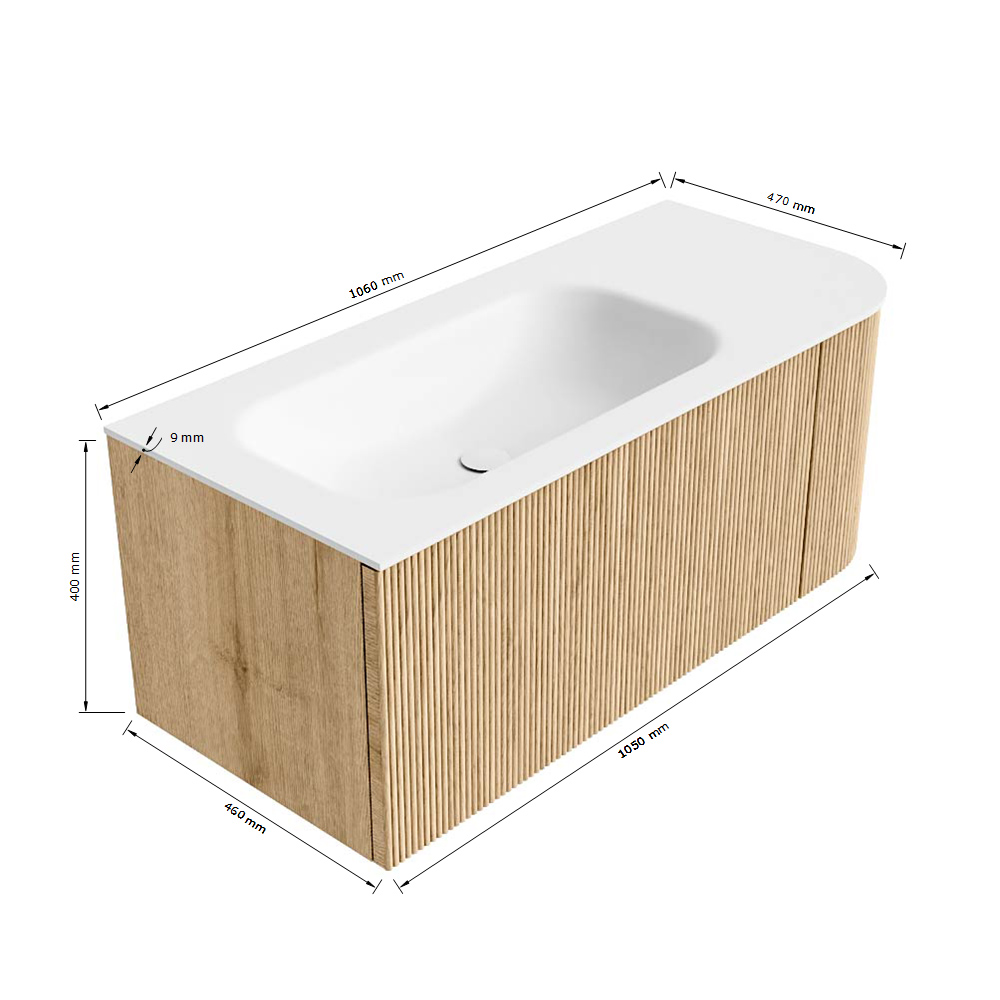 Functioneel Naast schoonheid biedt deze badkamermeubelset ook ongeëvenaarde functionaliteit. Het optimale ontwerp met één lade en één deur stelt je in staat om al je benodigdheden op een georganiseerde manier op te bergen zonder in te boeten op stijl. De slimme lay-out zorgt ervoor dat je je spullen efficiënt kunt indelen, zodat je badkamer altijd netjes en opgeruimd is. Daarnaast is de wastafel van solid surface niet alleen een genot voor het oog, maar ook uiterst praktisch, dankzij de gladde en duurzame afwerking die makkelijk te reinigen is. Het enkele kraangat biedt de vrijheid voor een modern mengkraan die perfect past bij jouw stijl en gebruiksgemak. Of je nu een liefhebber bent van snelle ochtenden of van uitgebreide avonden, deze badkamermeubelset zorgt ervoor dat al je handelingen soepel en moeiteloos verlopen, waardoor het de perfecte metgezel is voor je dagelijkse routines.
