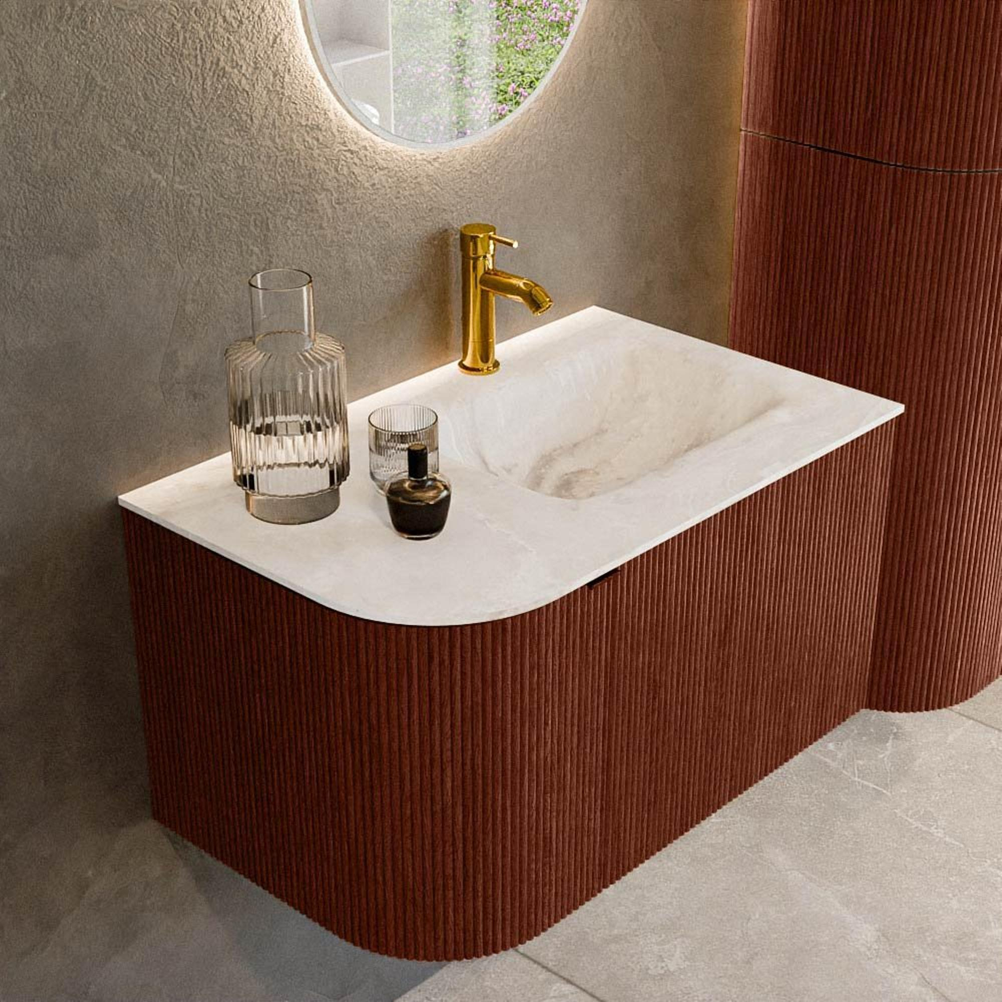 Mondiaz KURVE-DLUX Badkamermeubelset - 75x46x40cm - 1 lade - 1 deur - wastafel solid surface - rechts - 1 kraangat - Ruby