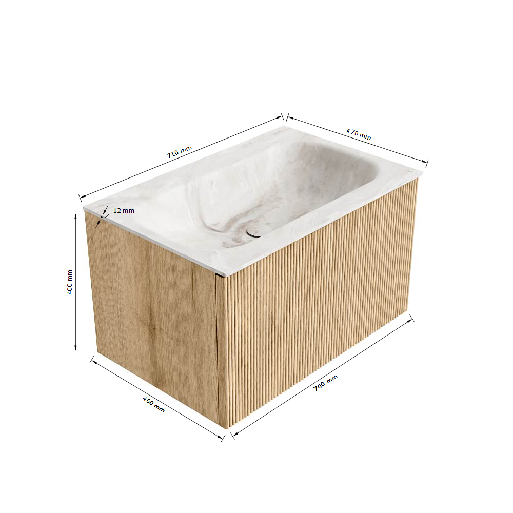 Functioneel Functionaliteit staat centraal in het ontwerp van dit badkamermeubel. De lade biedt een efficiënte opbergoplossing die helpt bij het organiseren van je badkamerartikelen. De indeling van de lade maakt het gemakkelijk om alles wat je nodig hebt binnen handbereik te houden, zonder afbreuk te doen aan de esthetiek. Daarnaast is het ontwerp van het meubel compact genoeg om ruimtebesparend te zijn, terwijl het nog steeds voldoende opbergruimte biedt. Dankzij het ontbreken van een kraangat heb je de flexibiliteit om de perfecte kraan te kiezen die bij jouw stijl en de rest van je badkamerinterieur past. De gladde oppervlakken zijn eenvoudig schoon te maken, wat bijdraagt aan een moeiteloze onderhoudsroutine en een langere levensduur van het meubel verzekert. Of je nu haast hebt in de ochtend of ontspant in de avond; dit meubel past zich moeiteloos aan jouw levensstijl aan.