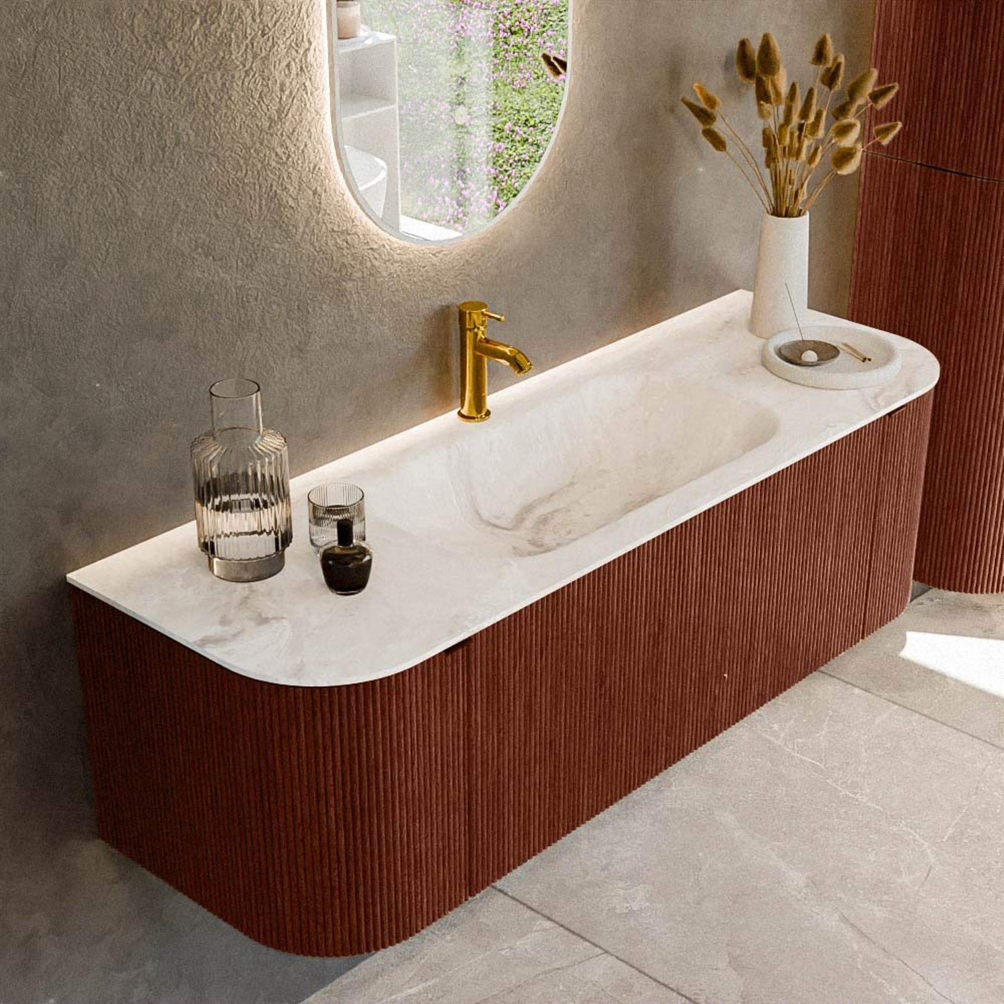 Mondiaz KURVE-DLUX Badkamermeubelset - 140x46x40cm - 1 lade - 2 deuren - wastafel solid surface - midden - 1 kraangat - Ruby
