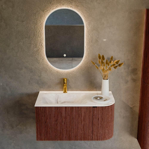 Mondiaz KURVE-DLUX Badkamermeubelset - 85x46x40cm - 1 lade - 1 deur - wastafel solid surface - links - 1 kraangat - Ruby