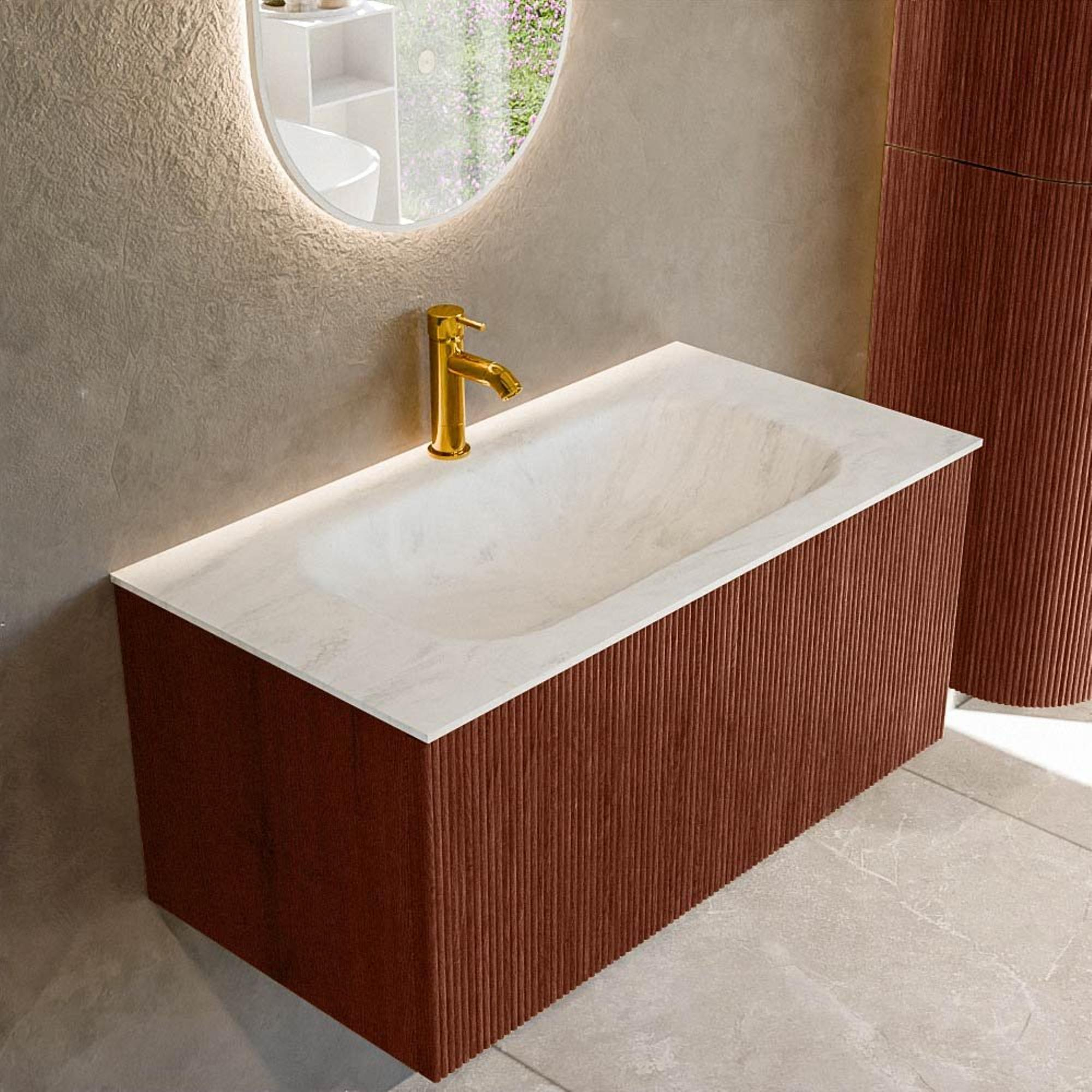 Mondiaz KURVE-DLUX Badkamermeubelset - 90x46x40cm - 1 lade - wastafel solid surface - midden - 1 kraangat - Ruby