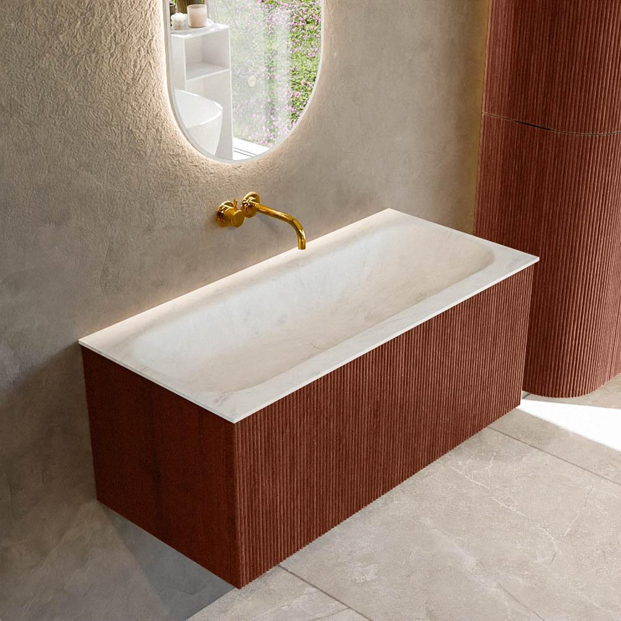 Mondiaz KURVE-DLUX Badkamermeubelset - 100x46x40cm - 1 lade - wastafel solid surface - midden - zonder kraangat - Ruby