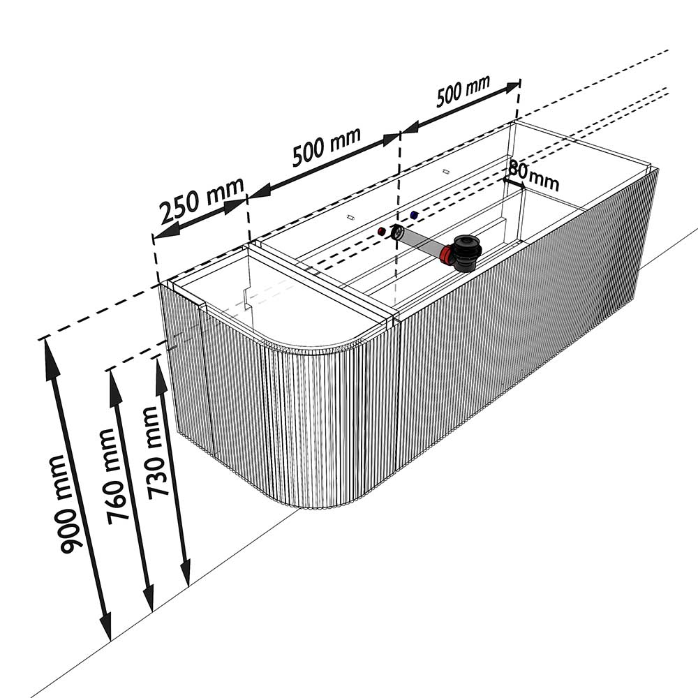 Stijlvol Met zijn slanke en elegante stijl biedt dit badkamermeubel een vleugje verfijning aan jouw badkamer. Het ontwerp combineert strakke moderne lijnen met een subtiel gebruik van ruimte die een modieuze ambiance creëert. De afwerking in de toon Ruby voegt een warme en uitnodigende sfeer toe, waardoor het een blikvanger is in elke badkameromgeving. Onder de strakke vormgeving schuilen slimme opbergoplossingen die perfect zijn voor het georganiseerde opbergen van toiletartikelen. De minimalistische esthetiek van het meubel wordt verder versterkt door de naadloze integratie van de wastafel en de kraangatopstelling aan de rechterkant, wat zorgt voor een symmetrisch en harmonieus doorlopende lijn. Het stijlvolle ontwerp vormt niet alleen een aanvulling op de ruimte, maar fungeert ook als het middelpunt dat grandeur uitstraalt. Of je nu een grote of kleine badkamer hebt, de elegante uitstraling van dit meubel zorgt ervoor dat het altijd een verfijnde keuze is die bewondering zal oogsten.