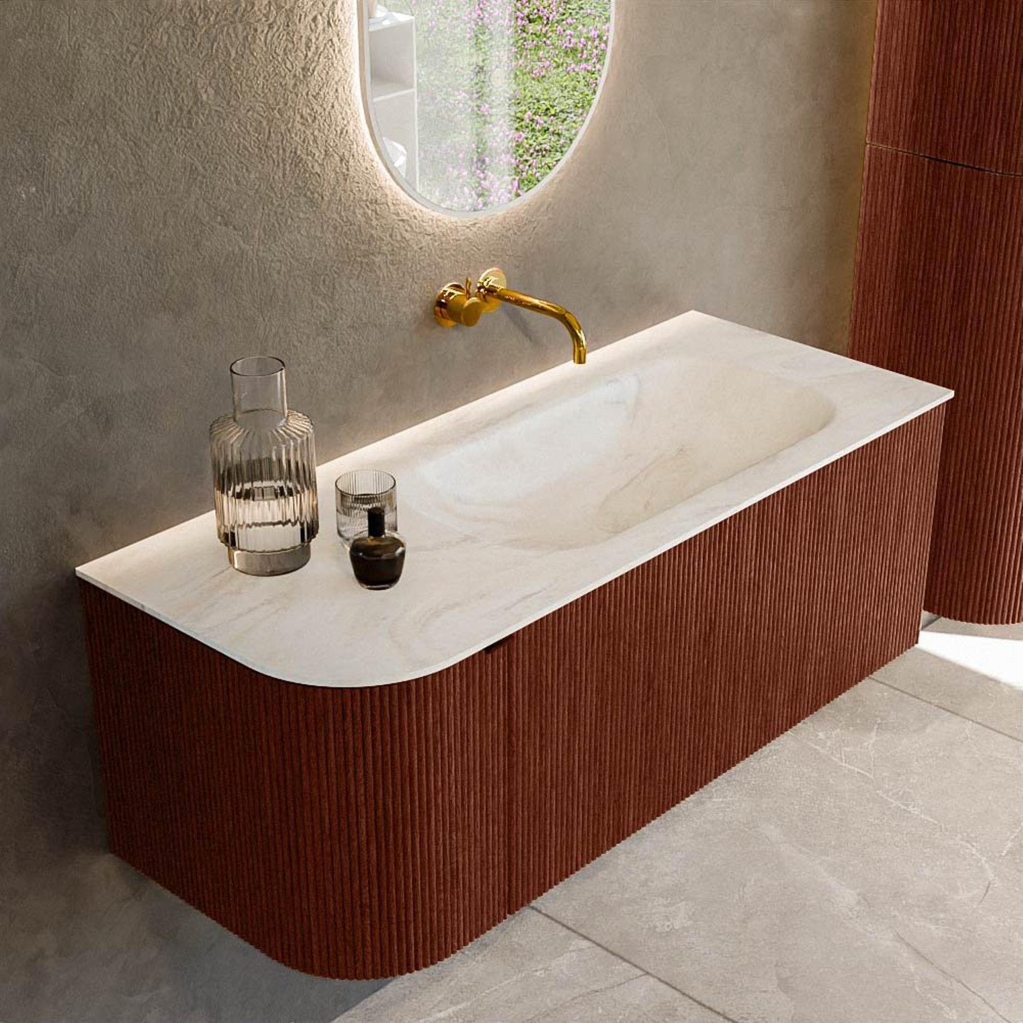 Mondiaz KURVE-DLUX Badkamermeubelset - 115x46x40cm - 1 lade - 1 deur - wastafel solid surface - rechts - zonder kraangat - Ruby