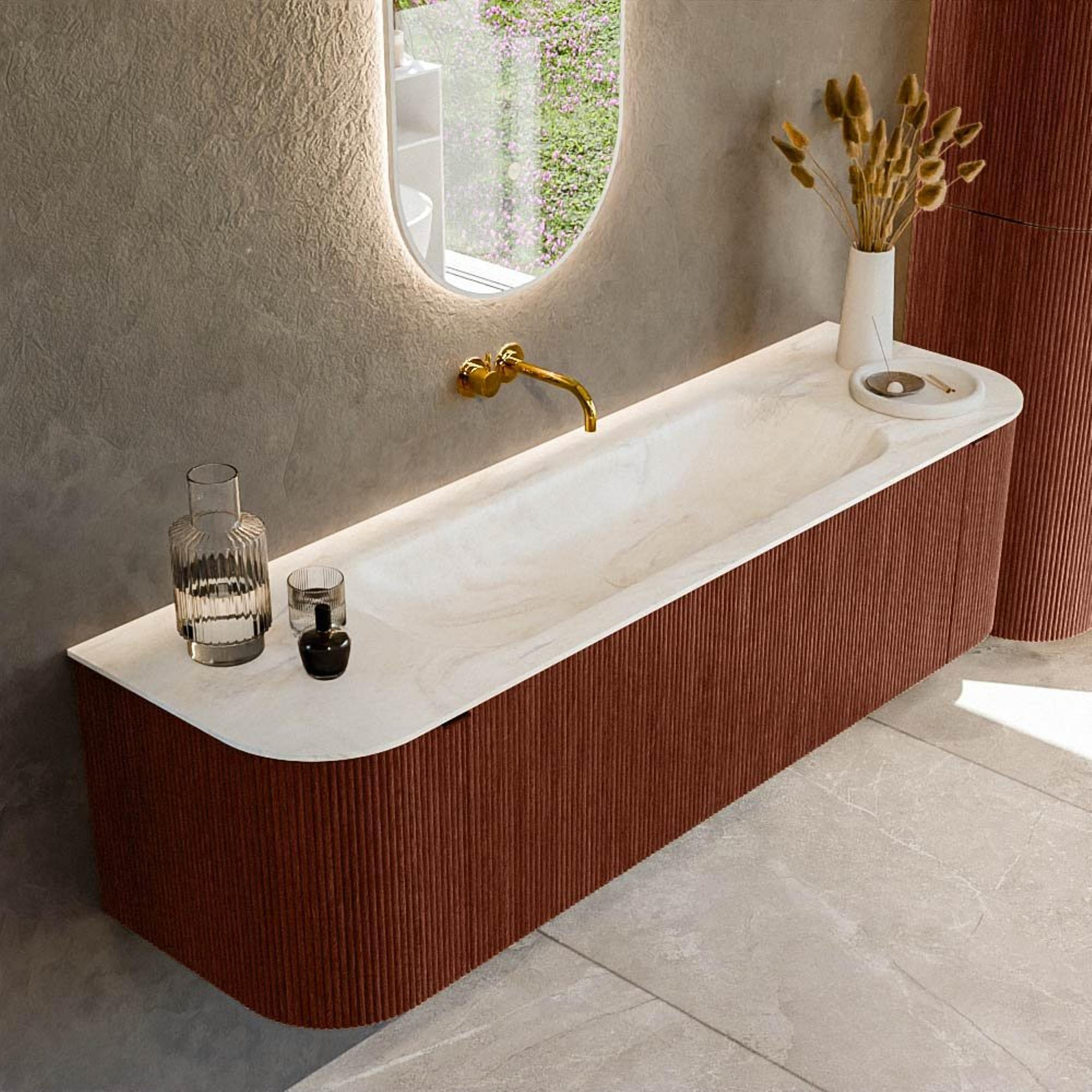 Mondiaz KURVE-DLUX Badkamermeubelset - 160x46x40cm - 1 lade - 2 deuren - wastafel solid surface - midden - zonder kraangat - Ruby