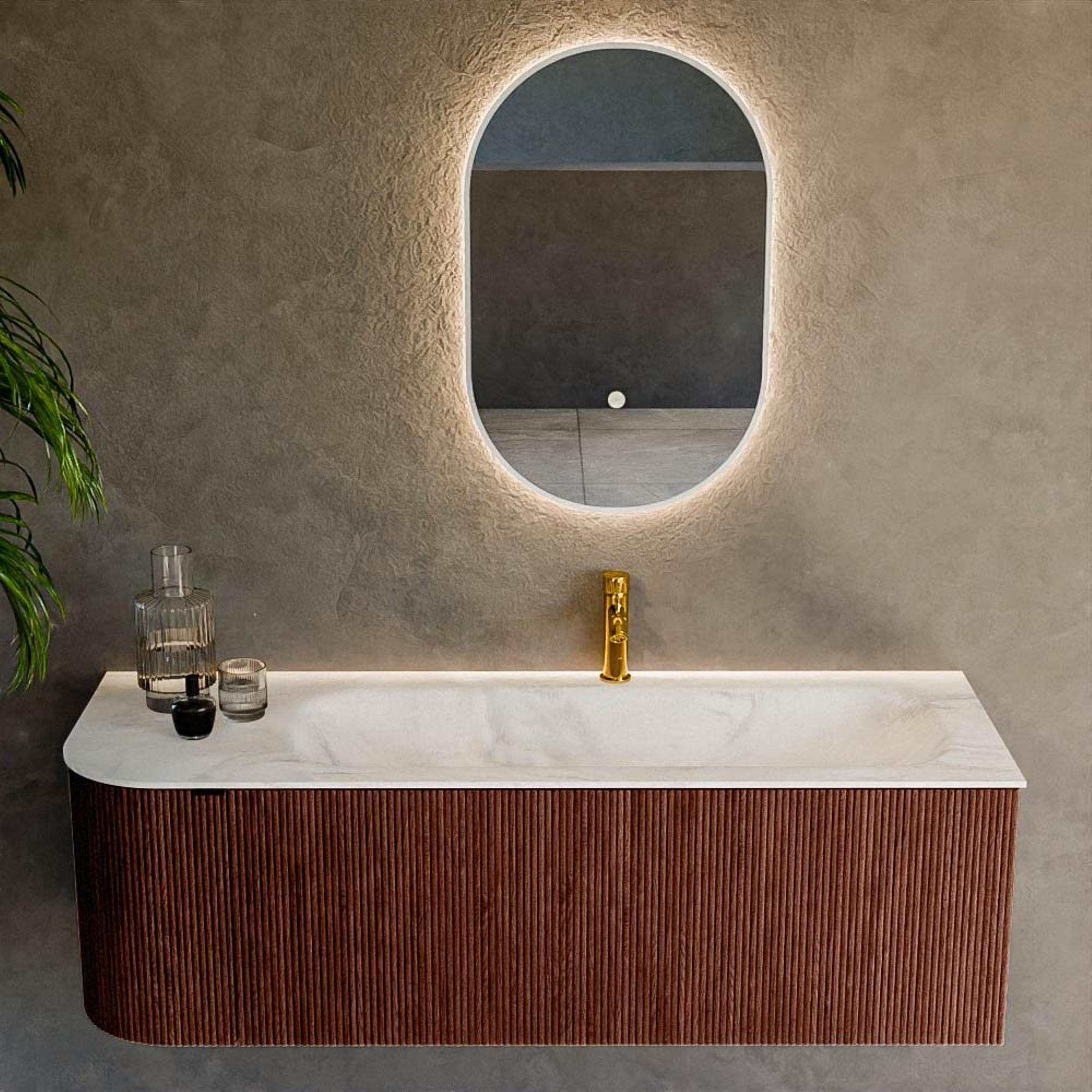 Mondiaz KURVE-DLUX Badkamermeubelset - 135x46x40cm - 1 lade - 1 deur - wastafel solid surface - rechts - 1 kraangat - Ruby