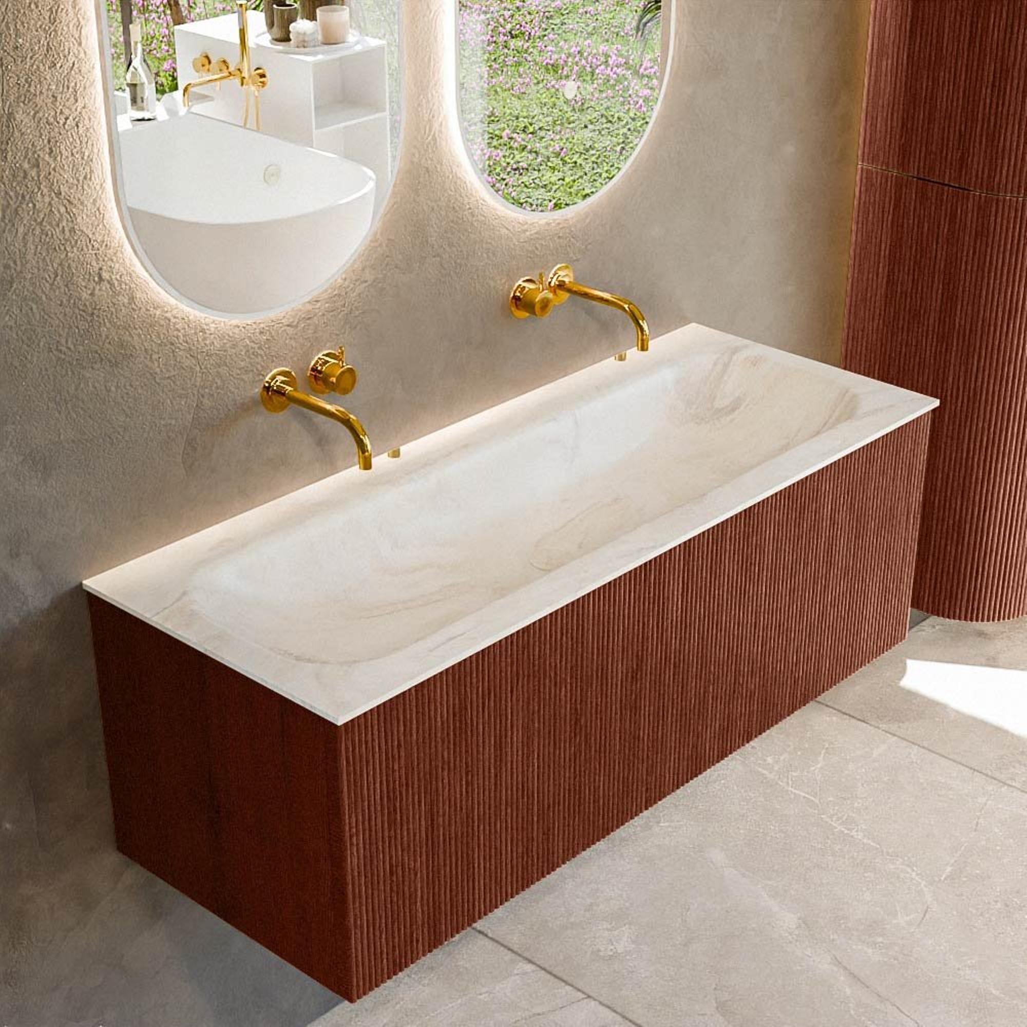 Mondiaz KURVE-DLUX Badkamermeubelset - 120x46x40cm - 1 lade - wastafel solid surface - midden - zonder kraangat - Ruby