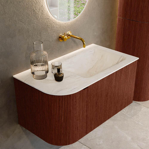 Mondiaz KURVE-DLUX Badkamermeubelset - 85x46x40cm - 1 lade - 1 deur - wastafel solid surface - rechts - zonder kraangat - Ruby