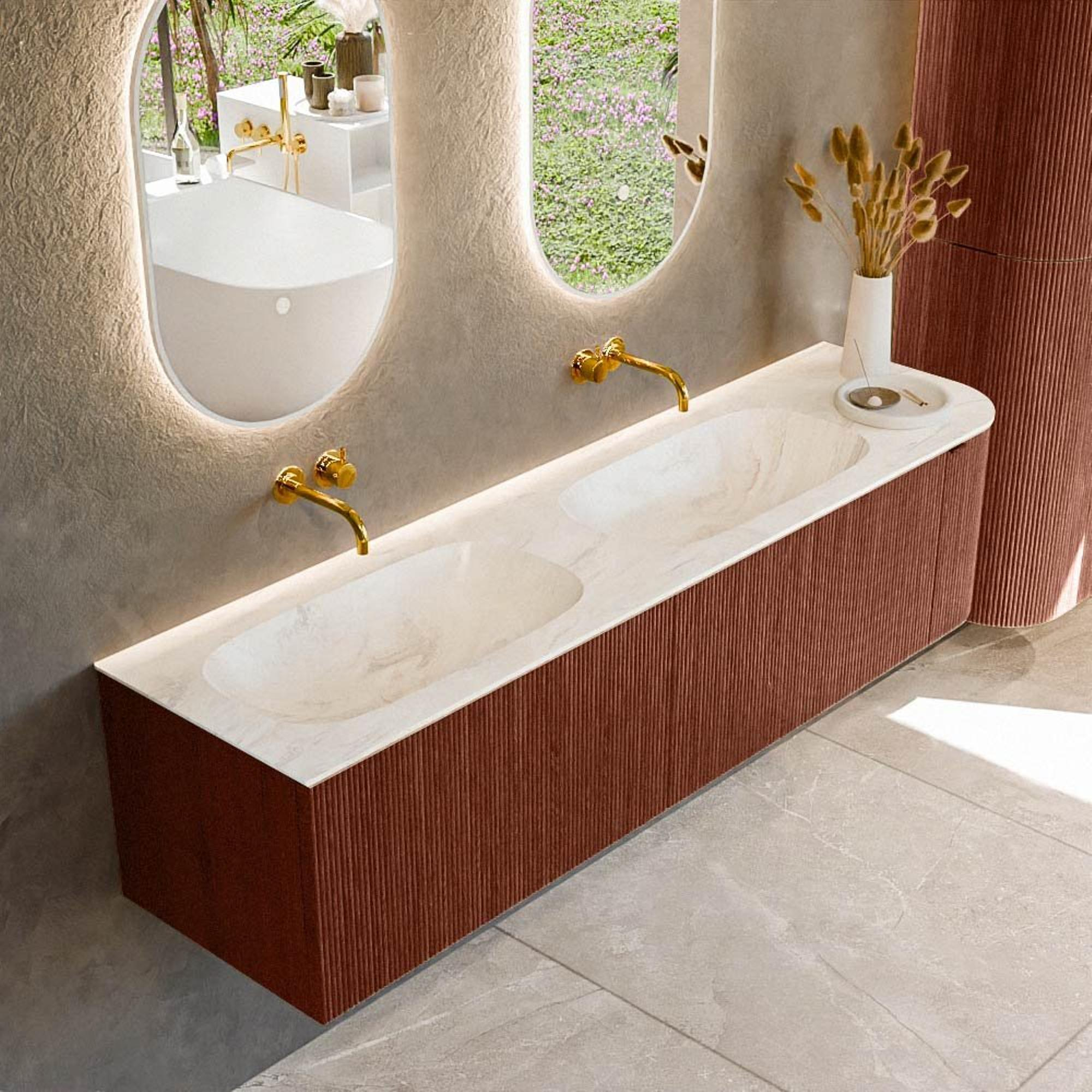 Mondiaz KURVE-DLUX Badkamermeubelset - 175x46x40cm - 2 lade - 1 deur - wastafel solid surface - dubbel / links - zonder kraangat - Ruby