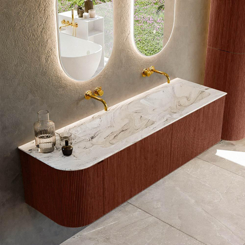 Mondiaz KURVE-DLUX Badkamermeubelset - 155x46x40cm - 2 lade - 1 deur - wastafel solid surface - dubbel / rechts - zonder kraangat - Ruby