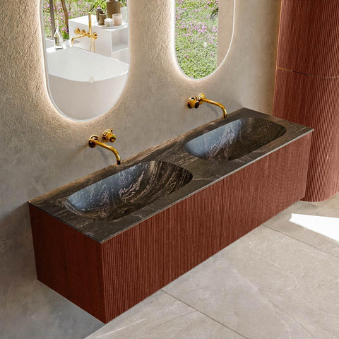 Mondiaz KURVE-DLUX Badkamermeubelset - 150x46x40cm - 2 lade - wastafel solid surface - dubbel - zonder kraangat - Ruby