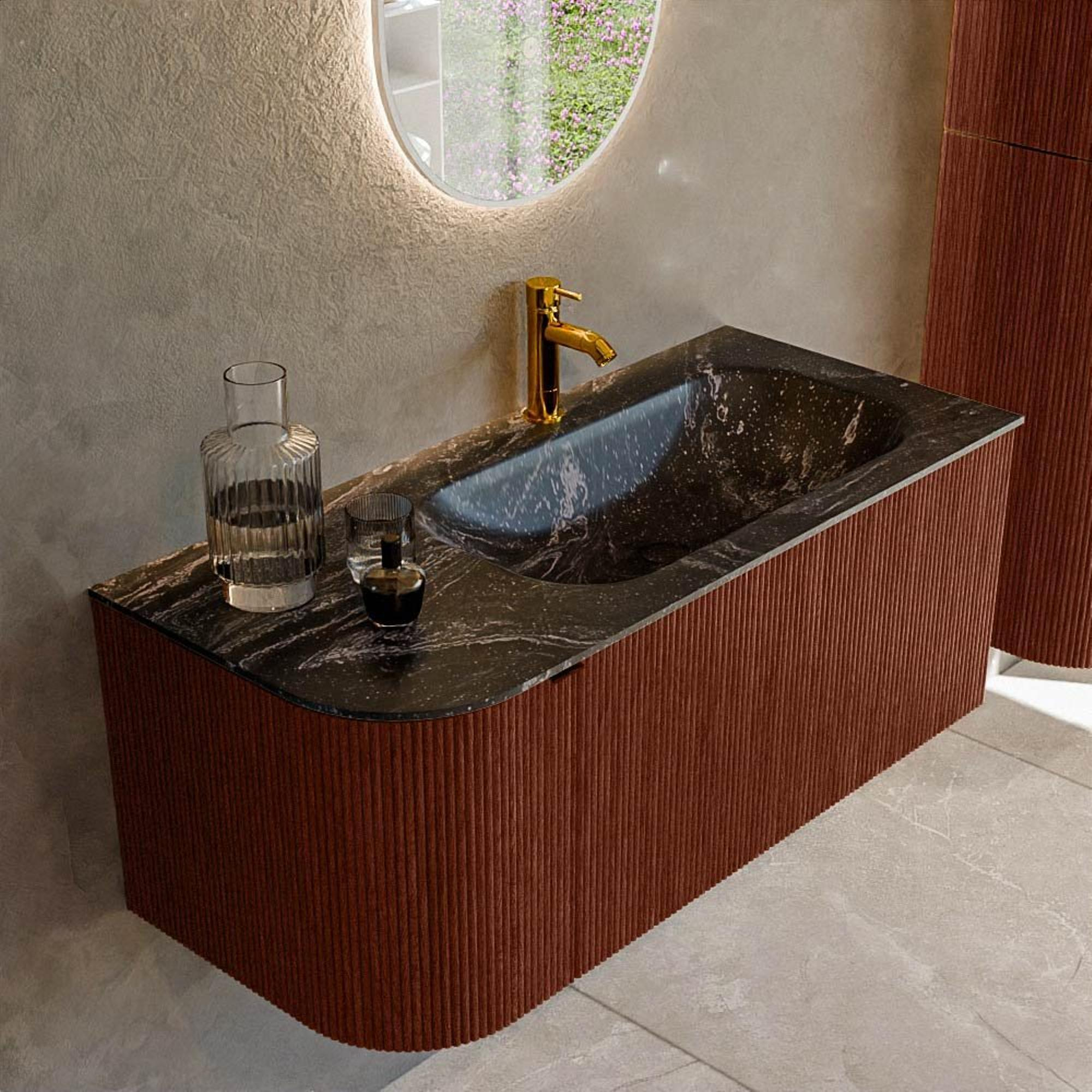 Mondiaz KURVE-DLUX Badkamermeubelset - 105x46x40cm - 1 lade - 1 deur - wastafel solid surface - rechts - 1 kraangat - Ruby