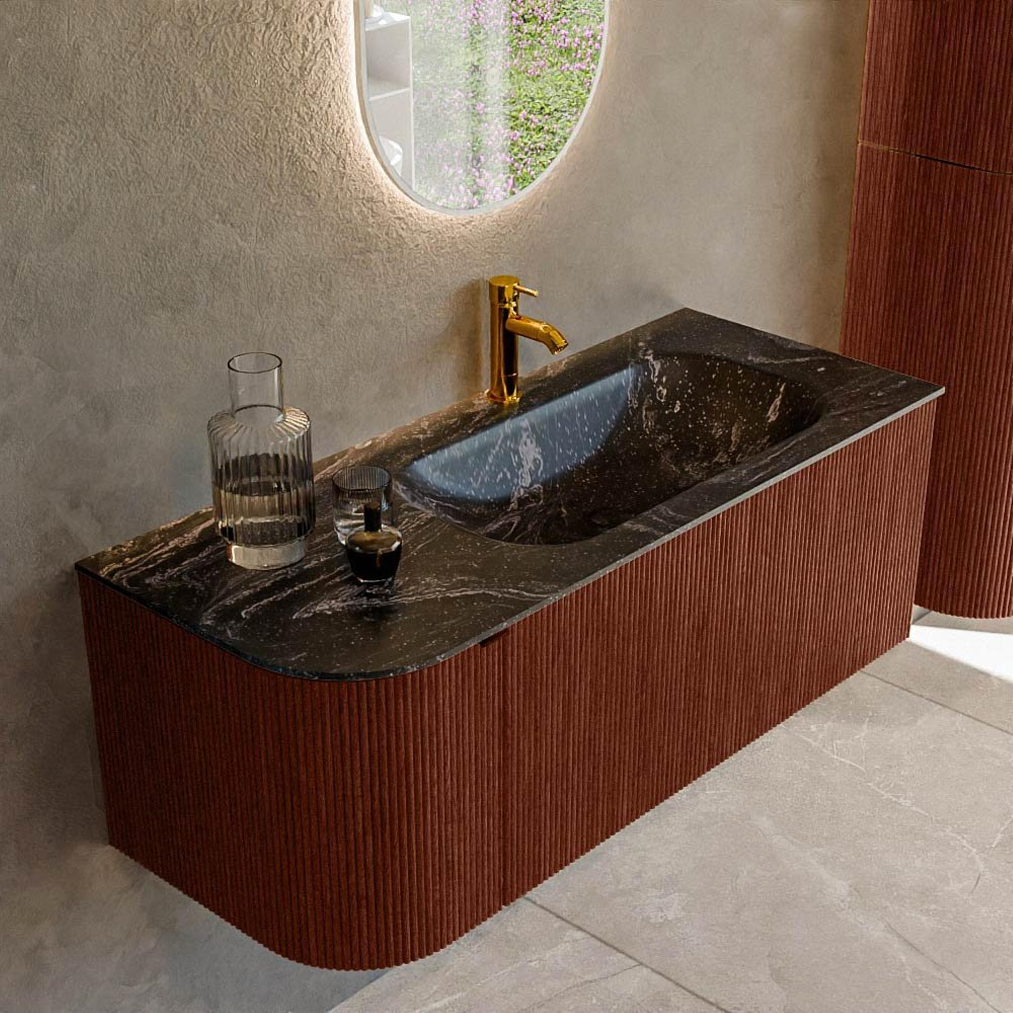 Mondiaz KURVE-DLUX Badkamermeubelset - 115x46x40cm - 1 lade - 1 deur - wastafel solid surface - rechts - 1 kraangat - Ruby