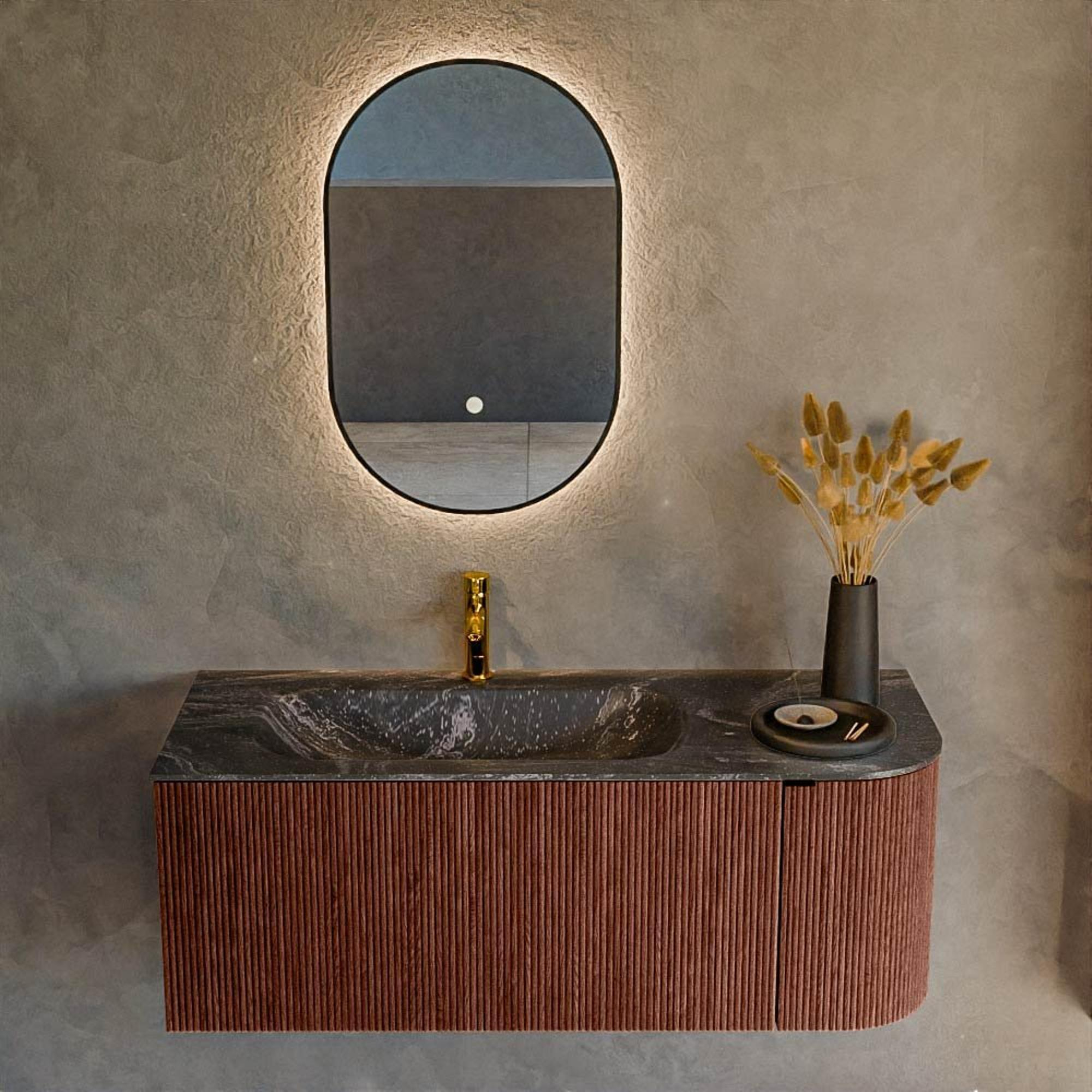 Mondiaz KURVE-DLUX Badkamermeubelset - 115x46x40cm - 1 lade - 1 deur - wastafel solid surface - links - 1 kraangat - Ruby