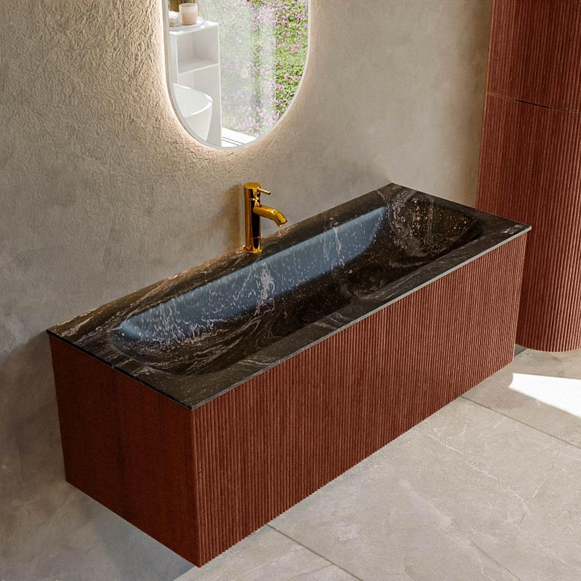 Mondiaz KURVE-DLUX Badkamermeubelset - 120x46x40cm - 1 lade - wastafel solid surface - midden - 1 kraangat - Ruby