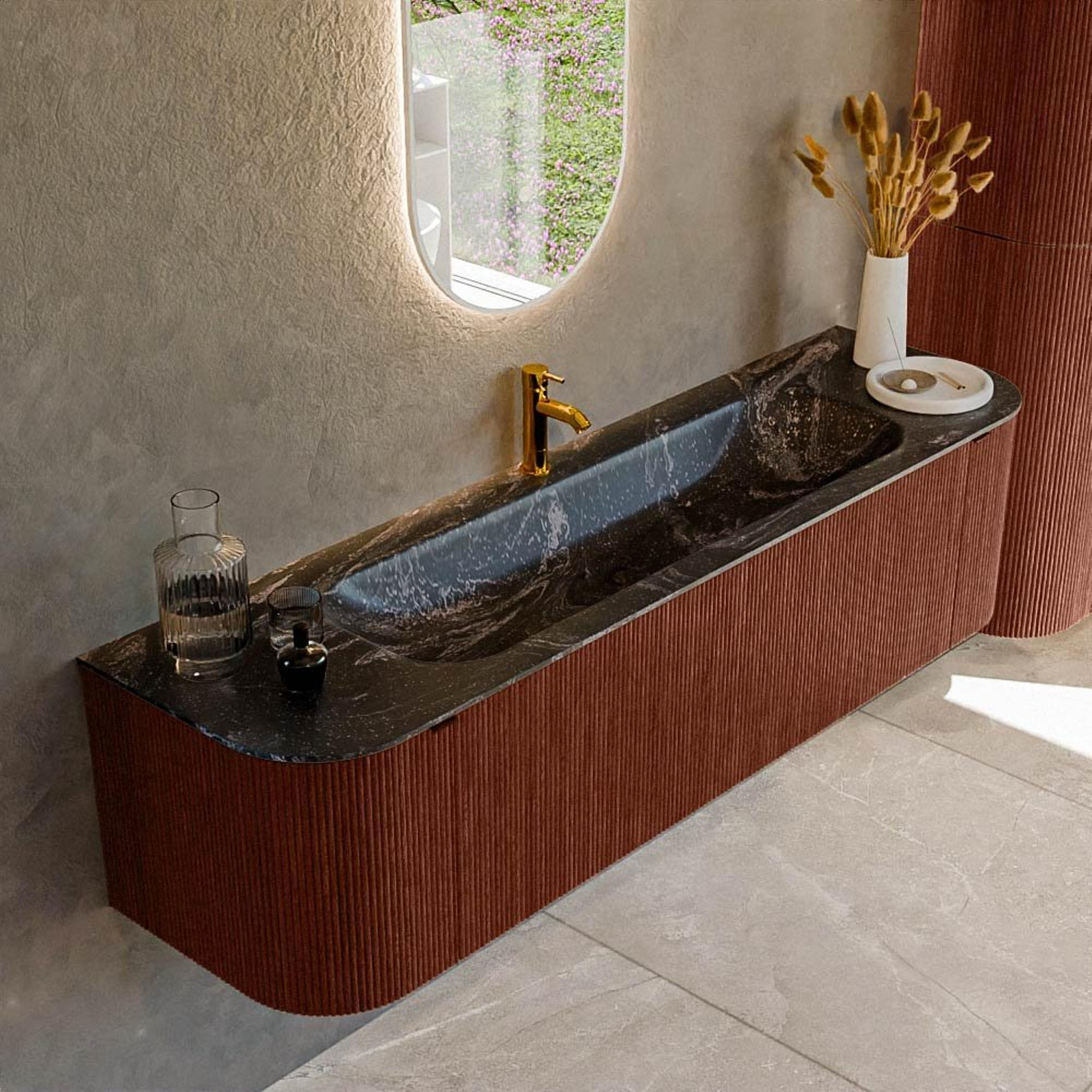 Mondiaz KURVE-DLUX Badkamermeubelset - 170x46x40cm - 1 lade - 2 deuren - wastafel solid surface - midden - 1 kraangat - Ruby