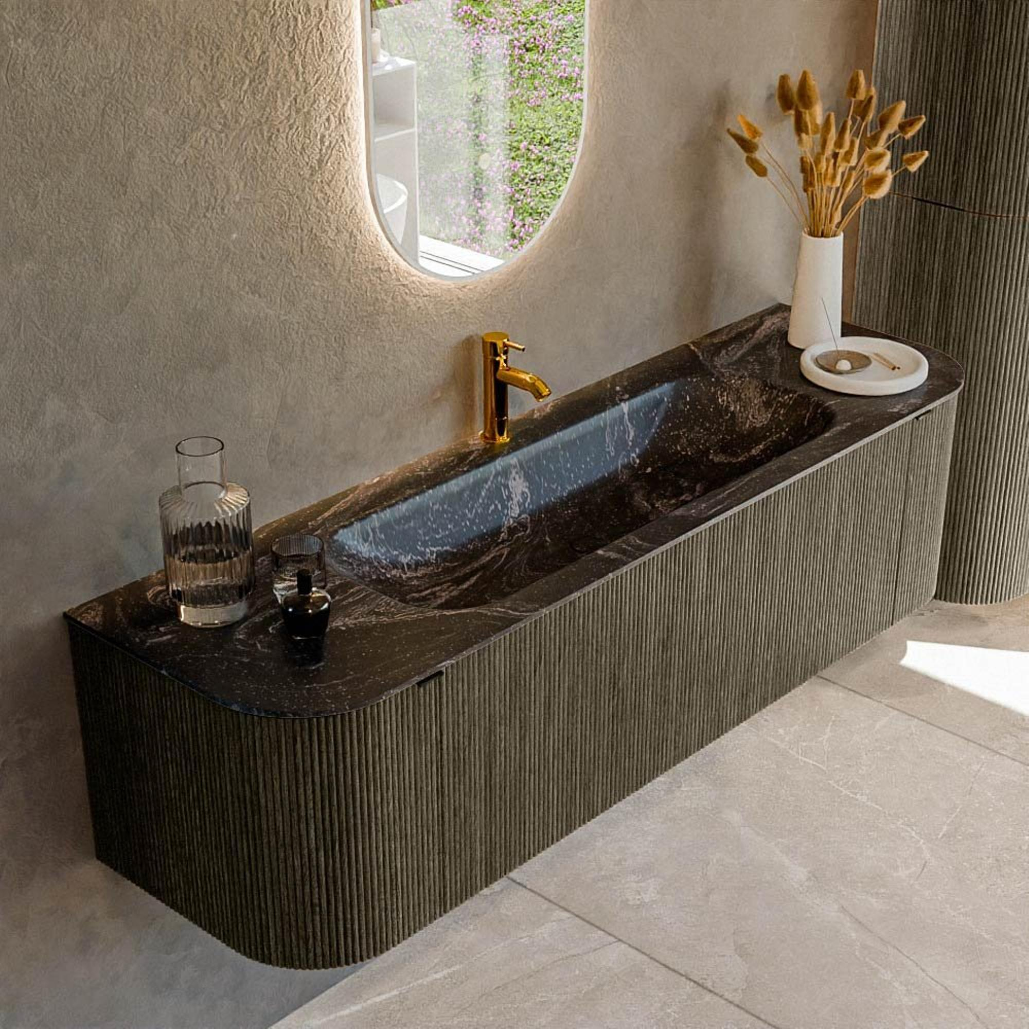 Mondiaz KURVE-DLUX Badkamermeubelset - 160x46x40cm - 1 lade - 2 deuren - wastafel solid surface - midden - 1 kraangat - Shadow