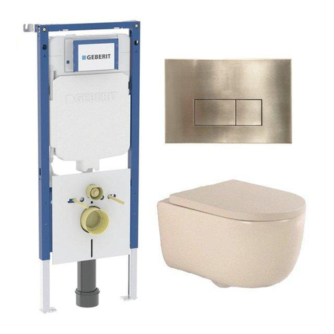 De QeramiQ Dely Swirl Toiletset straalt stijl en elegantie uit met zijn moderne ontwerp en geborsteld messing bedieningsplaat. De rechthoekige knoppen voegen een eigentijdse touch toe aan het geheel, terwijl de beige kleur een warme en uitnodigende sfeer creëert in de badkamer. Dit toiletset is niet alleen functioneel, maar ook een statement van smaak en klasse.
