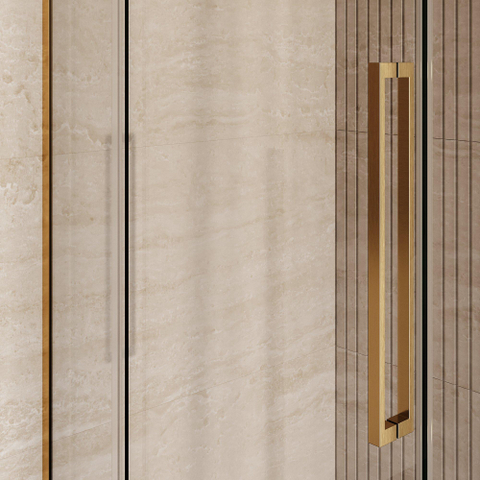 Met zijn heldere glas en de exclusieve geborstelde goud PVD-coating is deze douchecabine een echte blikvanger. De warme gouden tinten geven je badkamer een luxe uitstraling zonder te overheersen, terwijl het minimalistische design zorgt voor een tijdloze elegantie. Dankzij de hoogwaardige afwerking blijft de glans behouden, zelfs na jarenlang gebruik. Zo creëer je een badkamer die niet alleen mooi is om te zien, maar ook een gevoel van rust en verfijning uitstraalt. Deze stijlvolle cabine past perfect in moderne en klassieke interieurs en maakt van je dagelijkse douchebeurt een moment van pure verwennerij.