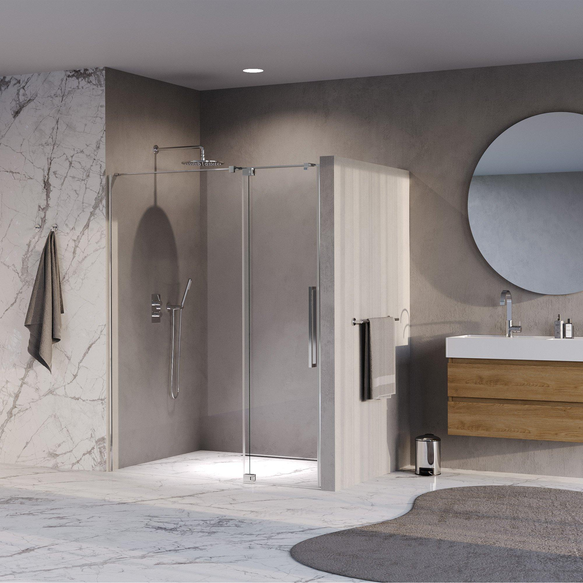 Met deze hoogwaardige nisdeur geef je jouw badkamer een moderne en luxe uitstraling. De combinatie van helder glas en chroomkleurig beslag met een duurzame PVD-coating zorgt niet alleen voor een stijlvolle look, maar ook voor een lange levensduur en eenvoudige reiniging. Dankzij het slimme, omkeerbare ontwerp pas je de deur moeiteloos aan jouw badkamerindeling aan, waardoor je maximale flexibiliteit hebt. De draaideur opent soepel en biedt een comfortabele instap, terwijl de speciale glascoating kalkaanslag en vuilvorming tegengaat. Zo geniet je elke dag van een frisse, lichte en uitnodigende doucheomgeving die perfect aansluit bij jouw persoonlijke stijl en wensen.